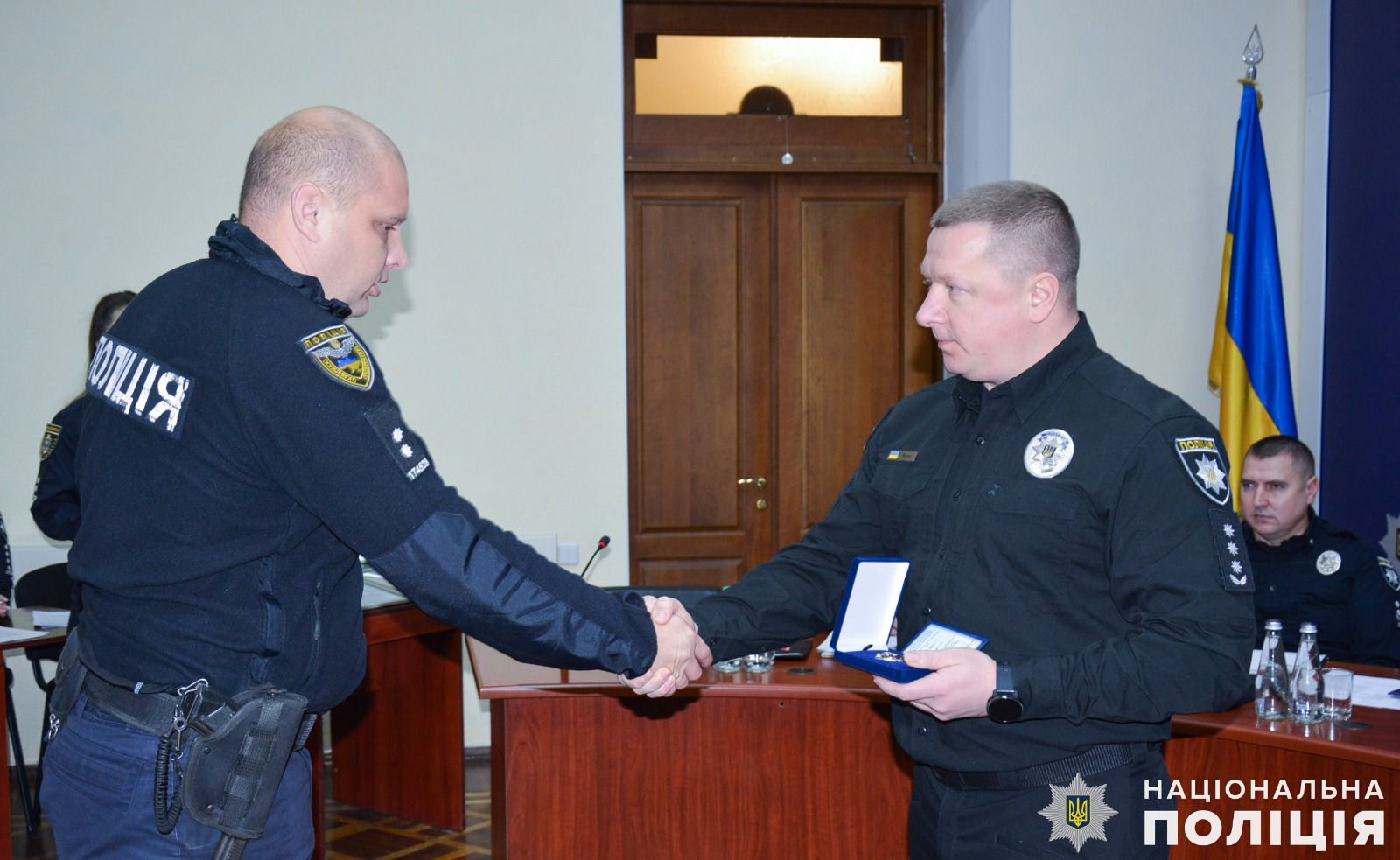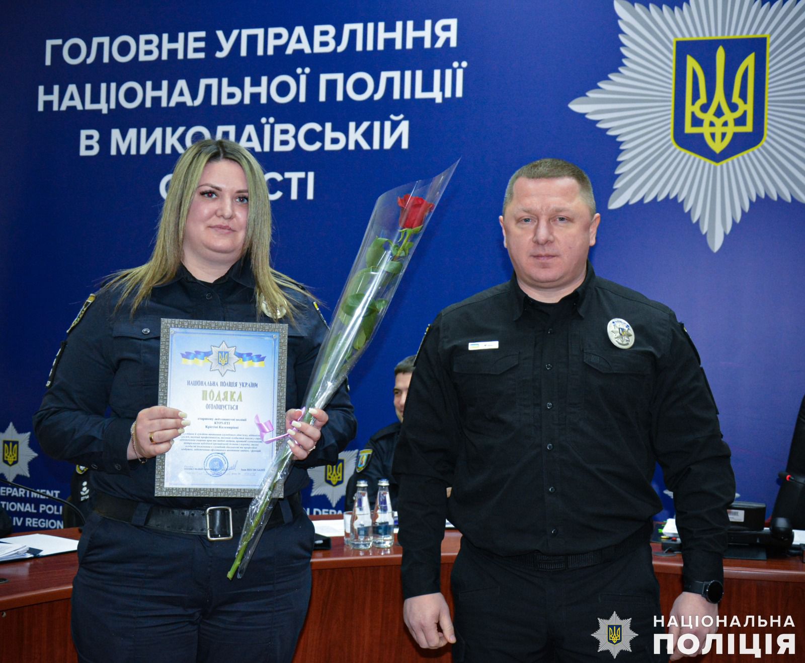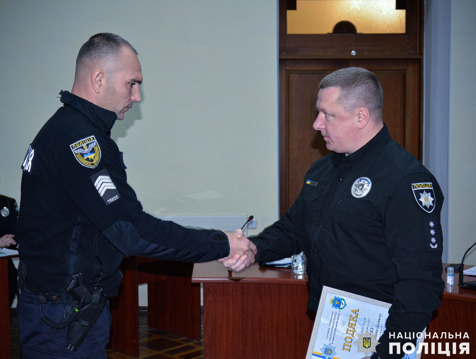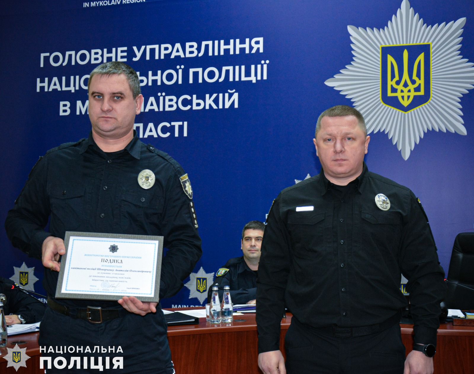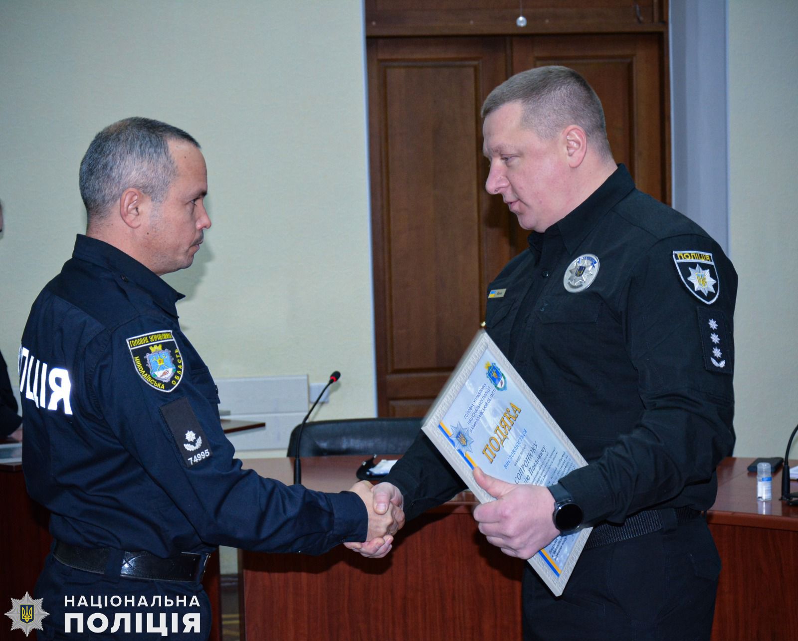 Також очільник поліції області вручив подяки дільничним офіцерам Миколаївського райуправління поліції Сергію Сопронюку та Віталію Орлову за встановленні місця знаходження та затримання особи, яка скоїла крадіжку 100 тисяч гривень мешканки Миколаєва. А за оперативне розкриття замаху на вбивство у Миколаївському районі, де місцевий житель кинув гранату у човен, в якому знаходились його знайомі, полковник поліції відзначив подяками дільничного офіцера відділення поліції № 4 Миколаївського райправління Євгена Голоту та інспектора сектору реагування превенції Василя Глуха.