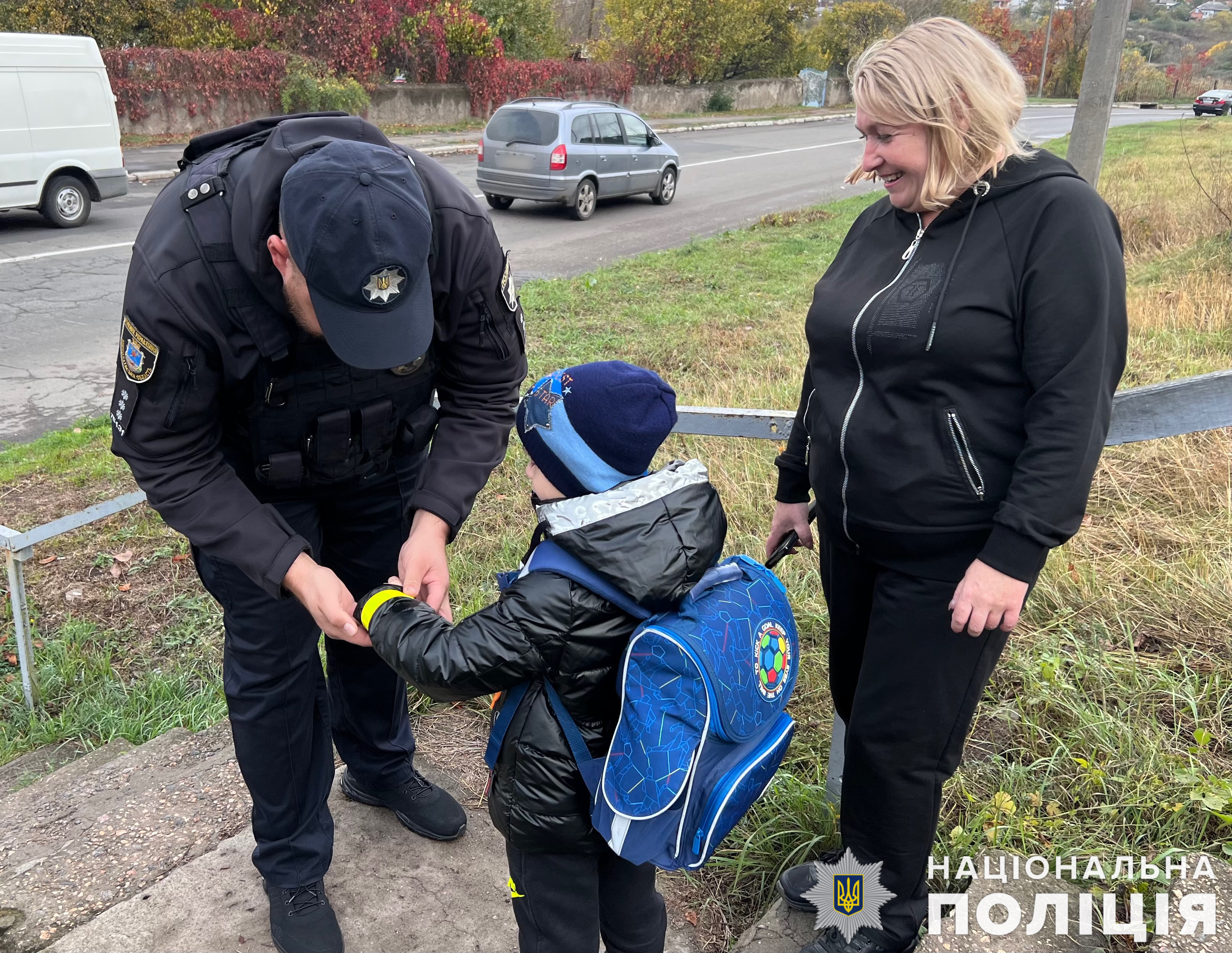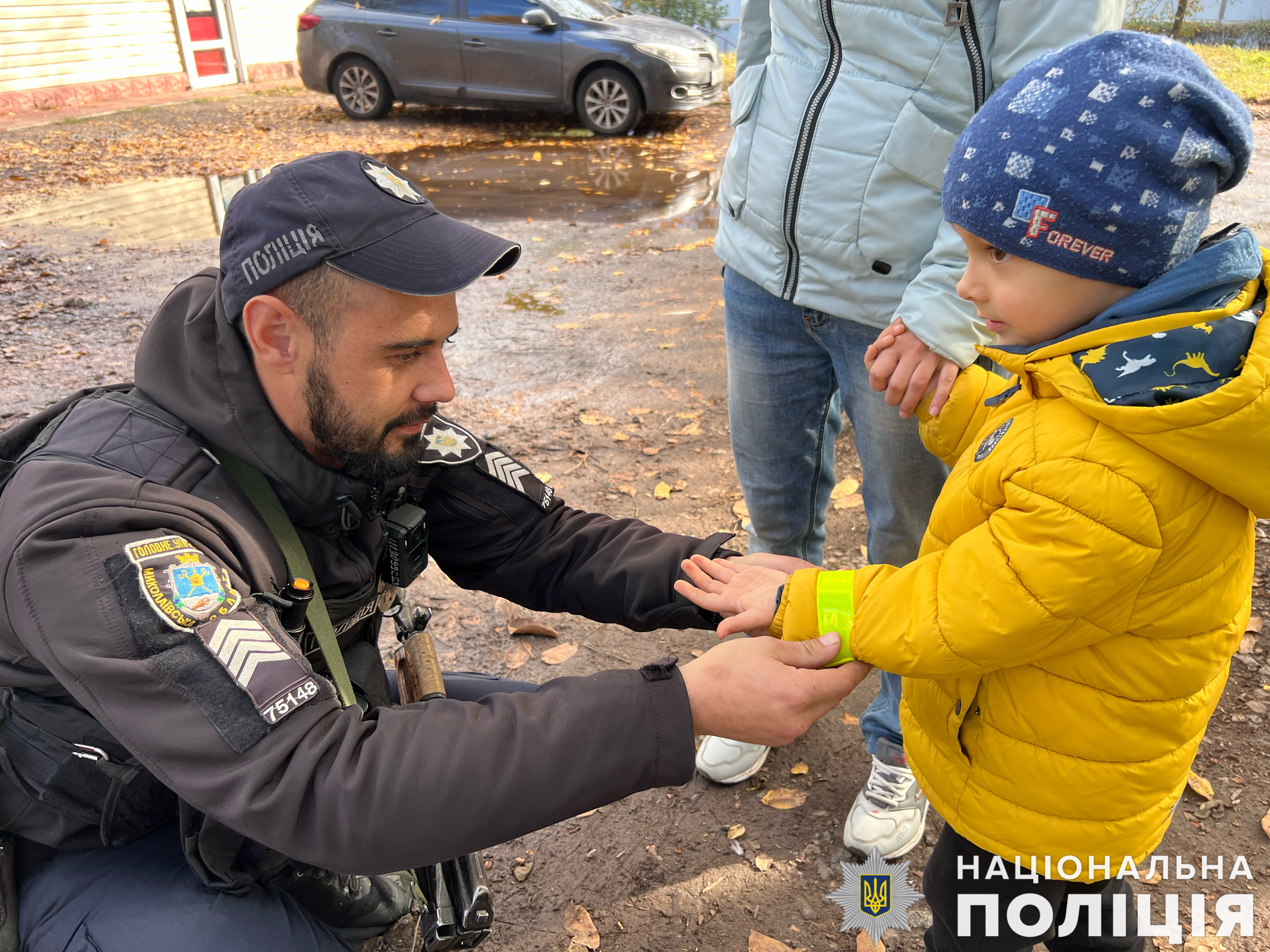 Спілкуючись із перехожими, правоохоронці дарували їм світловідбиваючі стрічки, які легко розміщуються на верхньому одязі, та браслети з надією, що вони вбережуть їхніх власників від травмувань під час пересування.