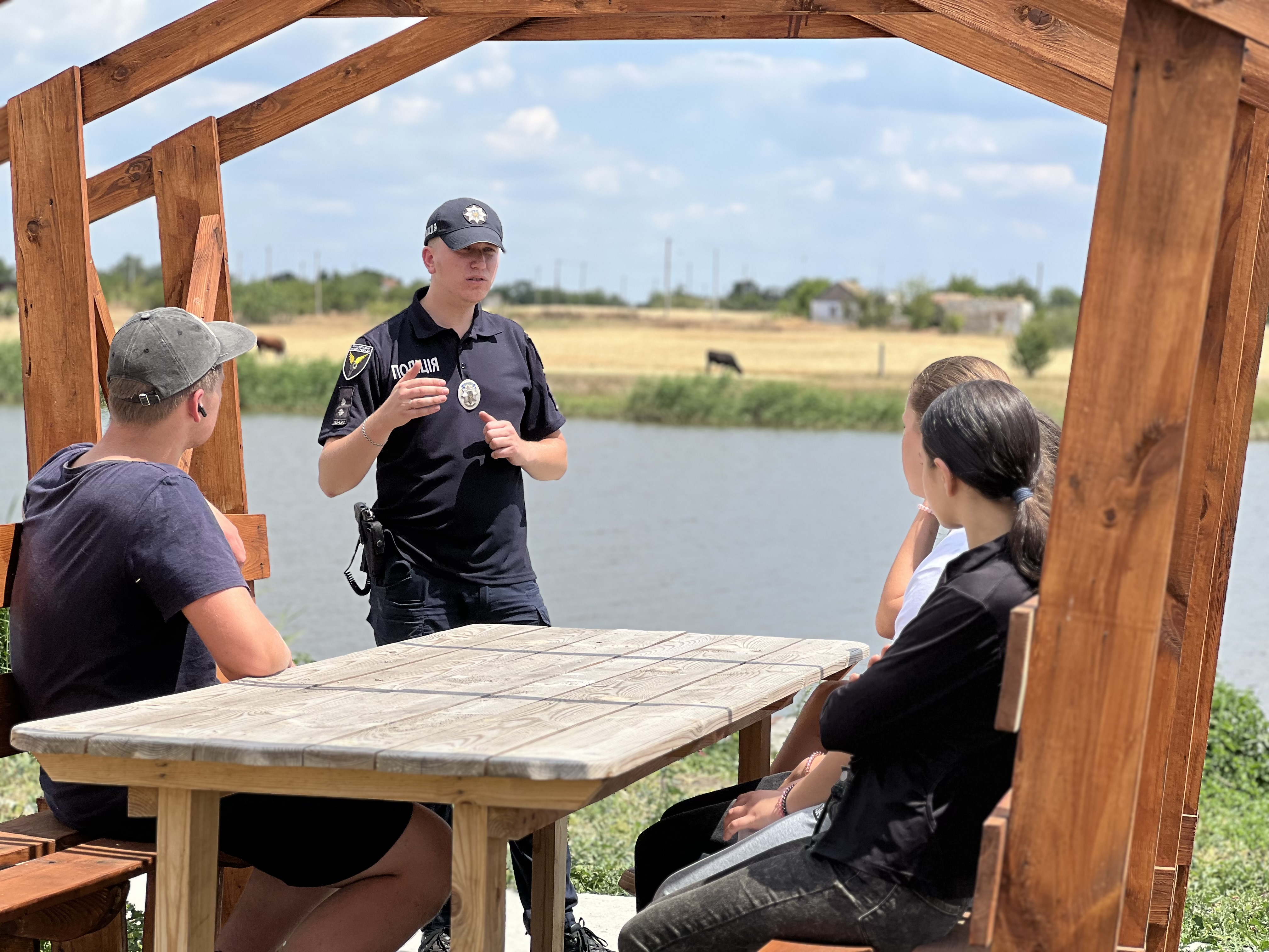 Особливу увагу офіцер приділив питанням безпеки влітку. Правоохоронець нагадав, як правильно переходити дорогу, користуватися велосипедом і самокатом, поводитися біля водойм та чому важливо відпочивати під наглядом дорослих. Також офіцер акцентував увагу на правилах риболовлі — пояснив, чому важливо дотримуватися природоохоронного законодавства та поважати навколишнє середовище.