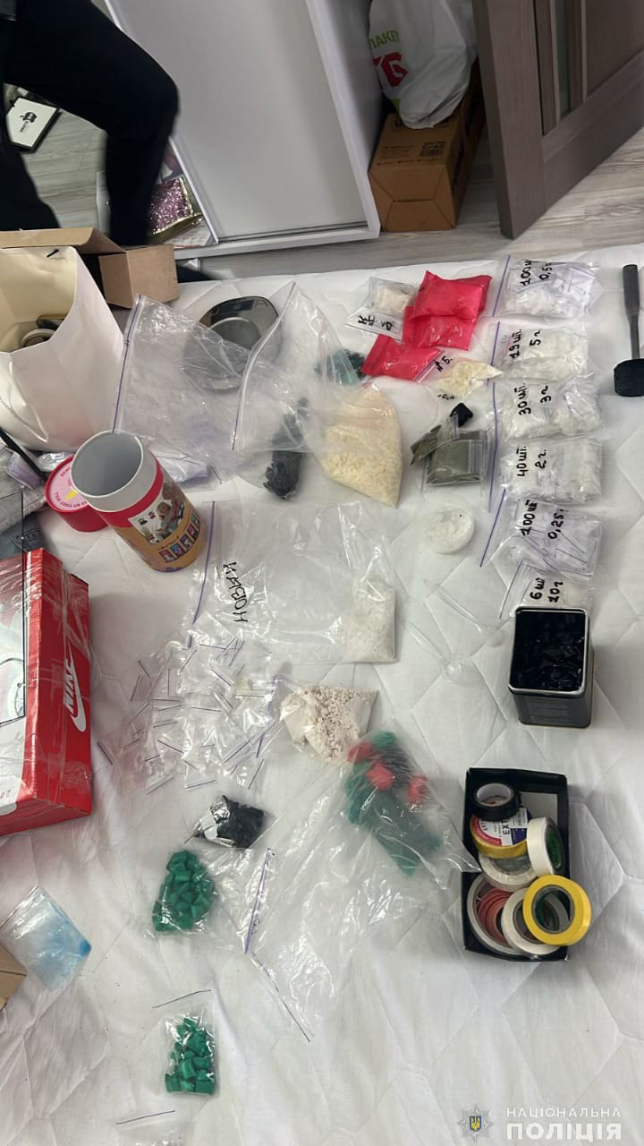 Під час санкціонованого обшуку в орендованій квартирі, де і проживали співмешканці, правоохоронці вилучили майже 985 грам психотропної речовини PVP, понад 70 грамів амфетаміну, 100 готового до вживання канабісу та приладдя для фасування - ZIP-пакети, ізоленту, і ваги, а також 400 Євро та 600 доларів США.