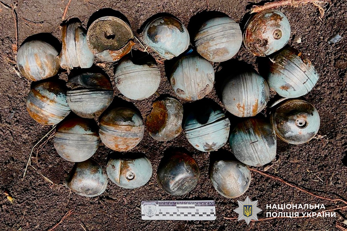 Осколкові бойові елементи на околиці села: на Миколаївщині поліцейські вибухотехніки знищили ворожі суббоєприпаси