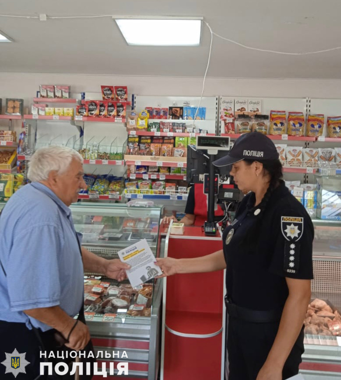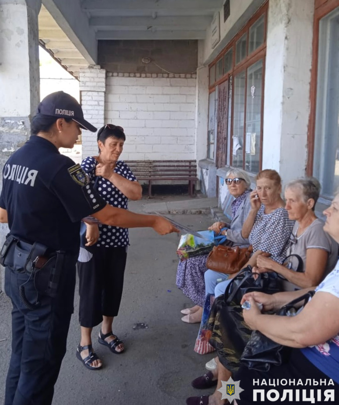 Спілкуючись з мешканцями Арбузинки, поліцейські роздавали профілактичні листівки з переліком найпоширеніших видів злочинних махінацій та як їм протидіяти. А також розміщували постери з інформативно-профілактичним змістом у приміщеннях магазинів громади та автостанції.