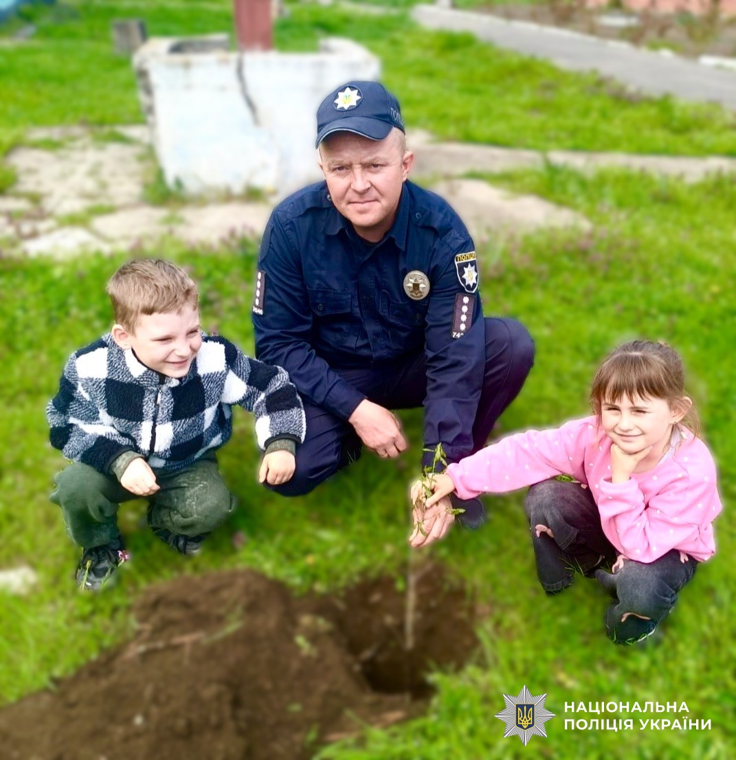 Озеленення та турбота: на Вознесенщині поліцейський разом із учнівською молоддю долучилися до благоустрою території закладів