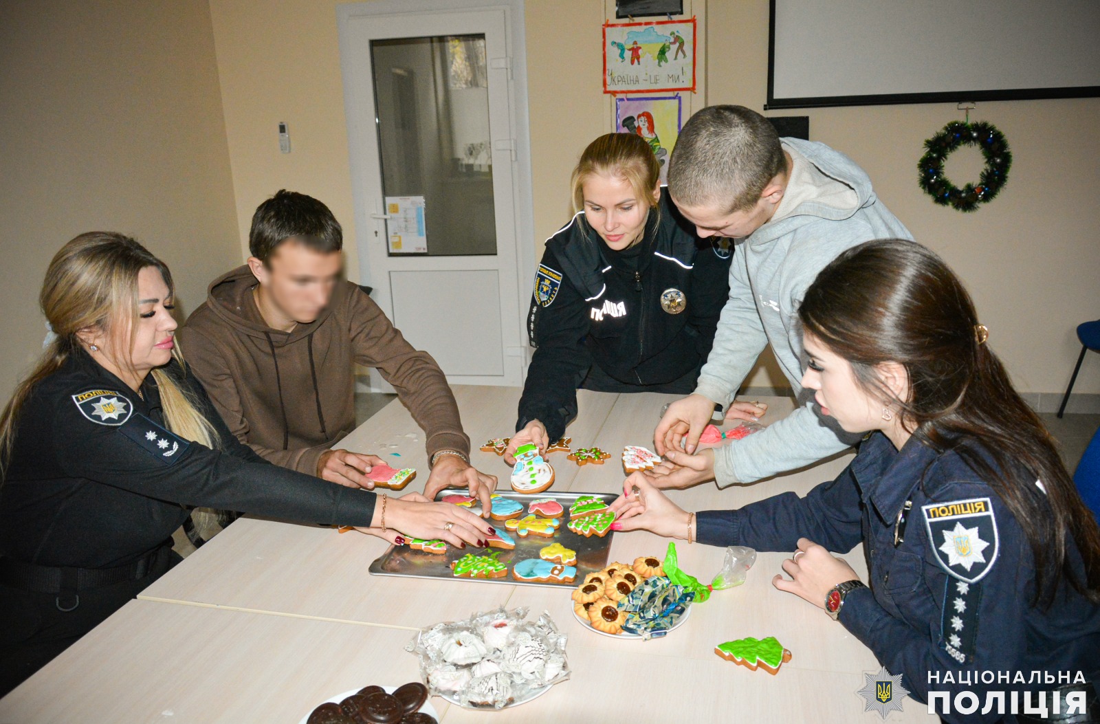 У знак подяки та турботи напередодні свят інспектори ювенальної превенції спільно з працівниками сектору ювенальної пропабації м. Миколаєва регіональної філії Державної установи "Центр пробації влаштували для дітей цікаве та корисне дозвілля. Діти разом із правоохоронцями виготовляли імбирне печиво та розмальовували його солодкою глазур’ю.