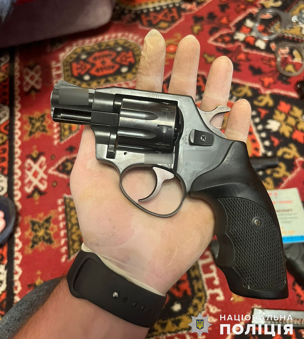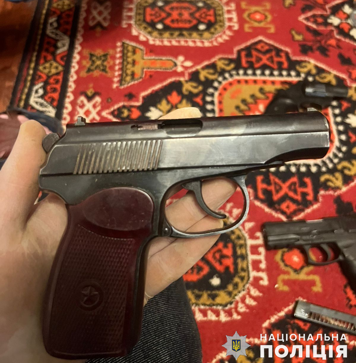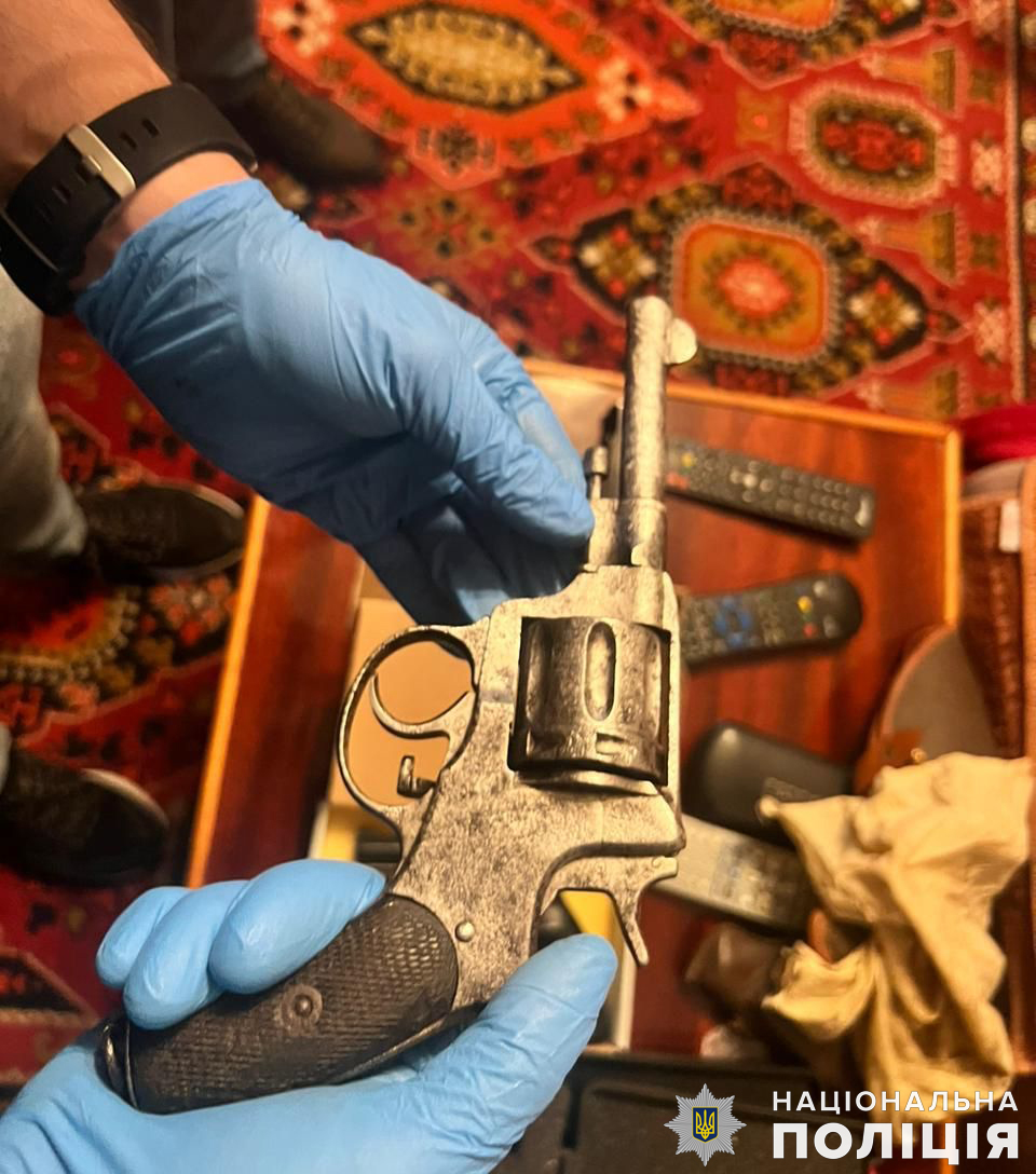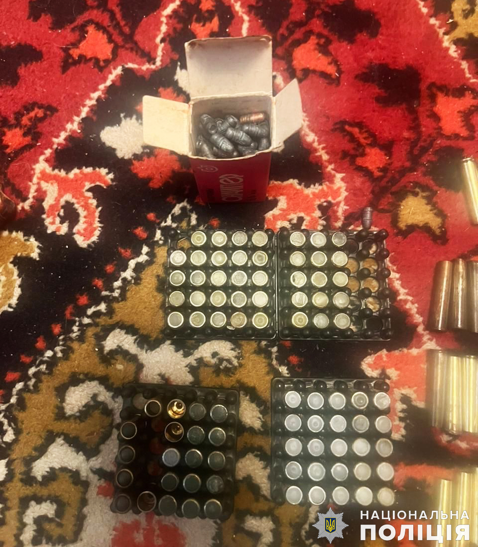 Під час проведення обшуків за місцем мешкання зловмисників правоохоронці виявили та вилучили два пістолети іноземного виробництва, два револьвери, пістолет Макарова, ще два пістолети з ознаками переробки, два корпуси гранати Ф-1 і підривачі до них та понад 300 патронів різного калібру.