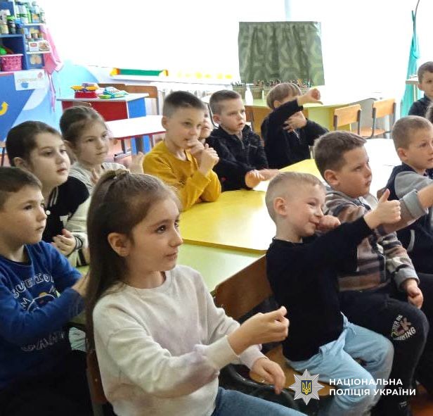 Офіцер служби освітньої безпеки Вознесенського районного управління поліції Карина Мельничук провела пізнавальне заняття «Мінна безпека для наймолодших» для учнів першого класу Вознесенського ліцею № 8.