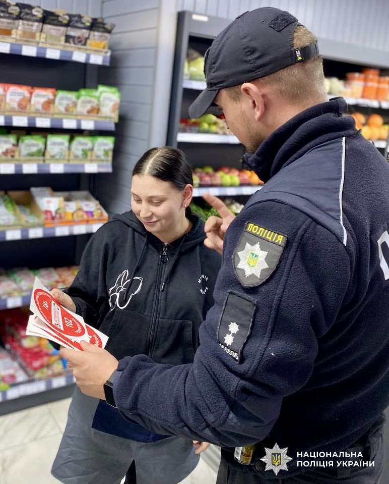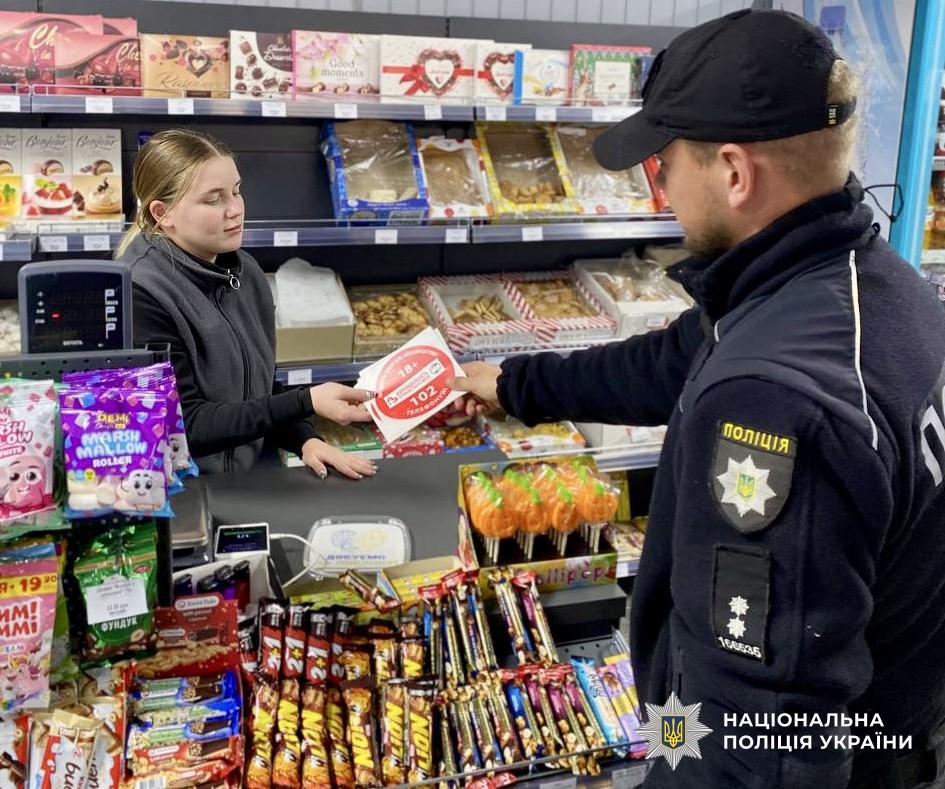 Під час бесід із підприємцями та реалізаторами правоохоронець попередив про передбачену адміністративну відповідальність за порушення норм продажу алкоголю чи тютюну неповнолітнім, передбачену ч. 2 ст. 156 КУпАП у вигляді штрафу до 13 600 гривень з можливим анулюванням ліцензії.
