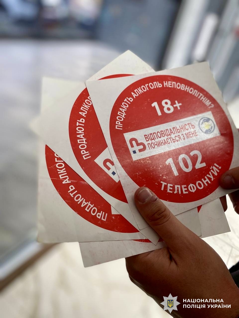 Для підвищення обізнаності працівників сфери торгівлі та юних покупців поліцейський розмістив на видимих місцях інформаційні наліпки про заборону продажу підакцизних товарів неповнолітнім у кожному із відвіданих закладів.