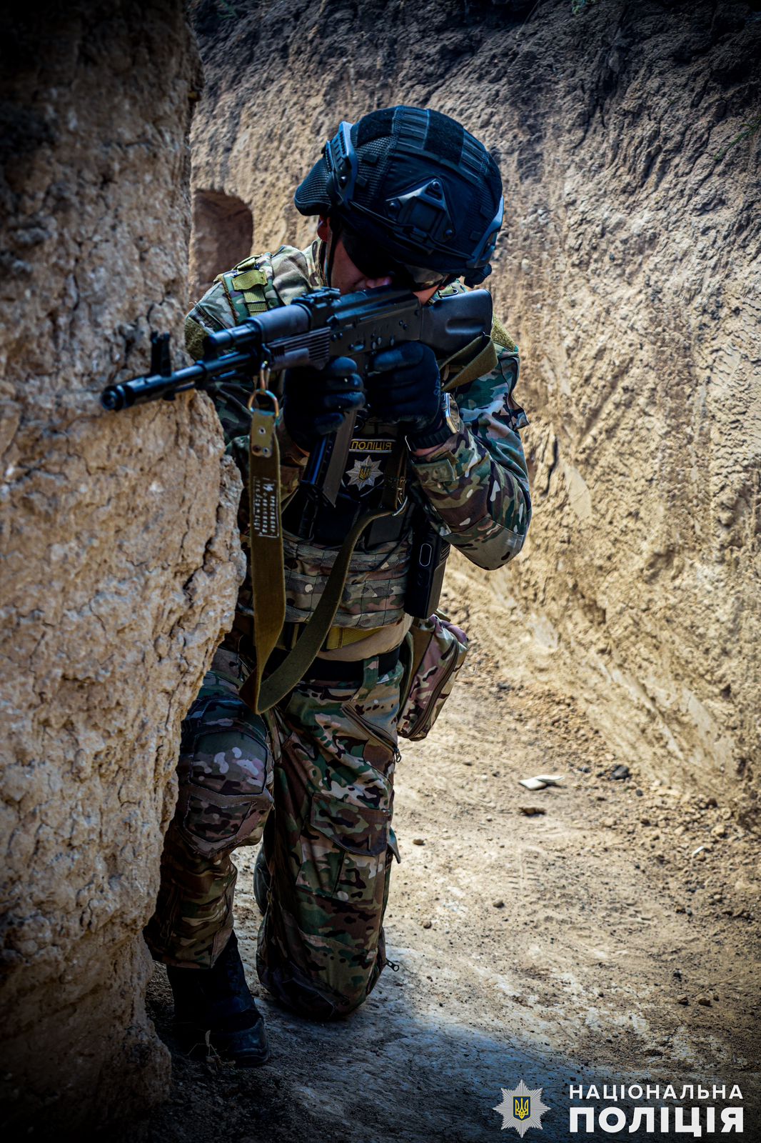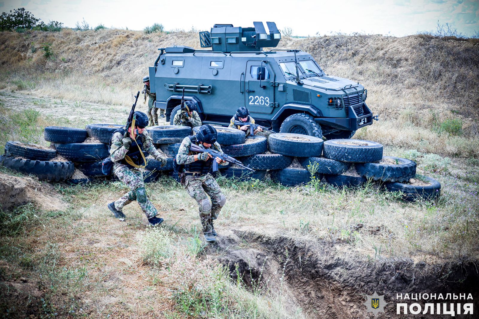 Нині бойовий поліцейський підрозділ, до складу якого увійшли правоохоронці з різних служб Головного управління Національної поліції Миколаївщини та підпорядкованих районних підрозділів проходять вишкіл на полігоні.