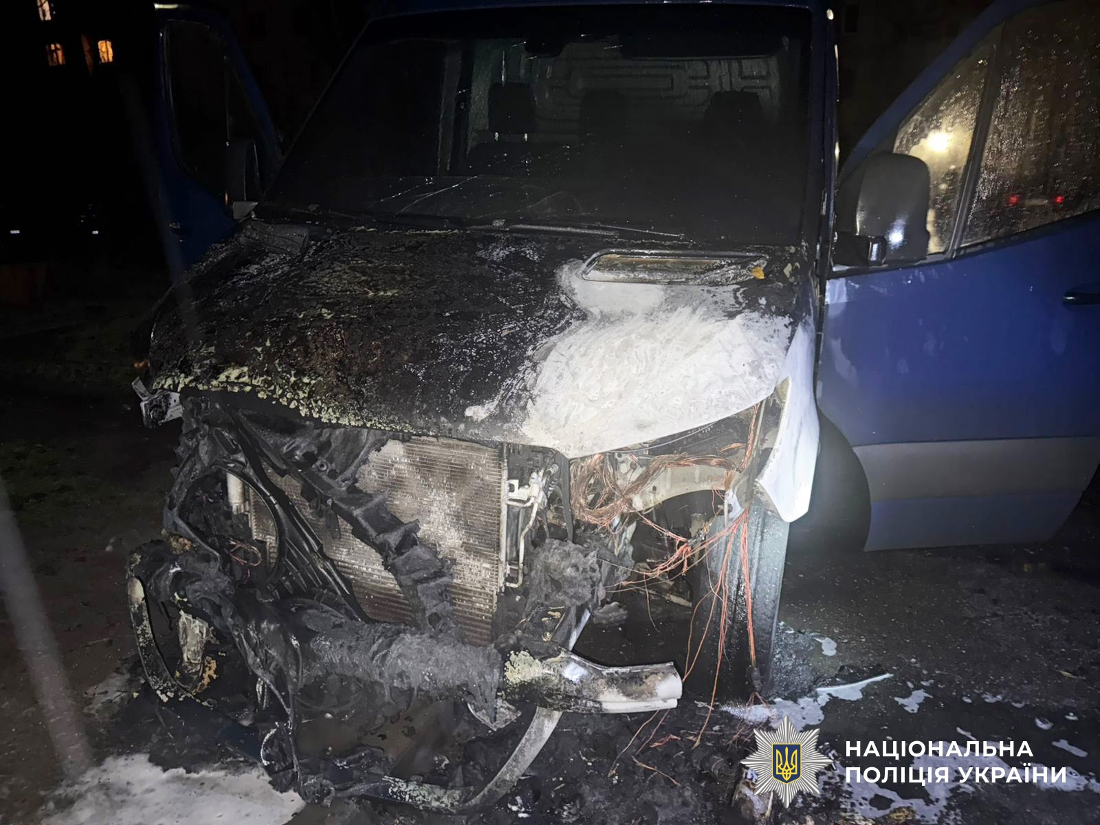 Події стались на початку грудня на території мікрорайону Намив в обласному центрі. Зловмисниця облила легкозаймистою рідиною і підпалила вантажівку MAN та мікроавтобус Mercedes-Benz, що були припарковані неподалік багатоквартирних будинків. На місцях подій пожежу ліквідували рятувальники, а слідчо-оперативні групи поліції вилучили фрагменти згорілих матеріалів та інші речові докази.