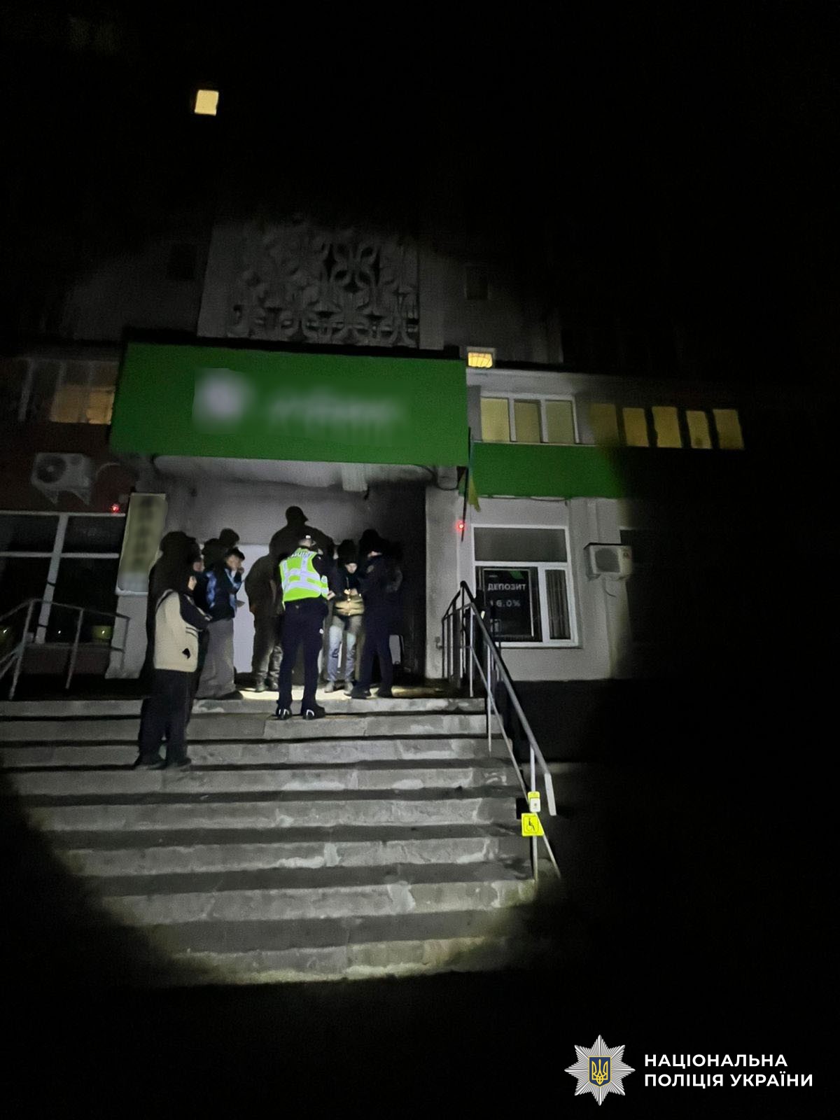 На місце події негайно прибули слідчо-оперативна група відділення поліції № 1 Миколаївського райуправління та оперативники, які задокументували пошкодження фасаду приміщення фінустанови.