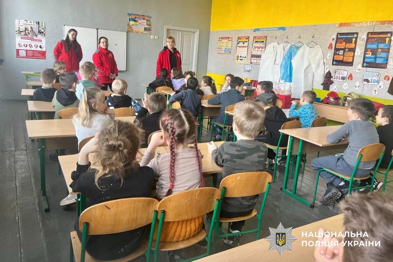 Інтерактивний захід «Підтримка дітей в умовах воєнних дій» в Казанківській гімназії № 2 провели інспектор сектору освітньої безпеки Баштанського райвідділу поліції спільно з представниками Товариства Червоного Хреста України.