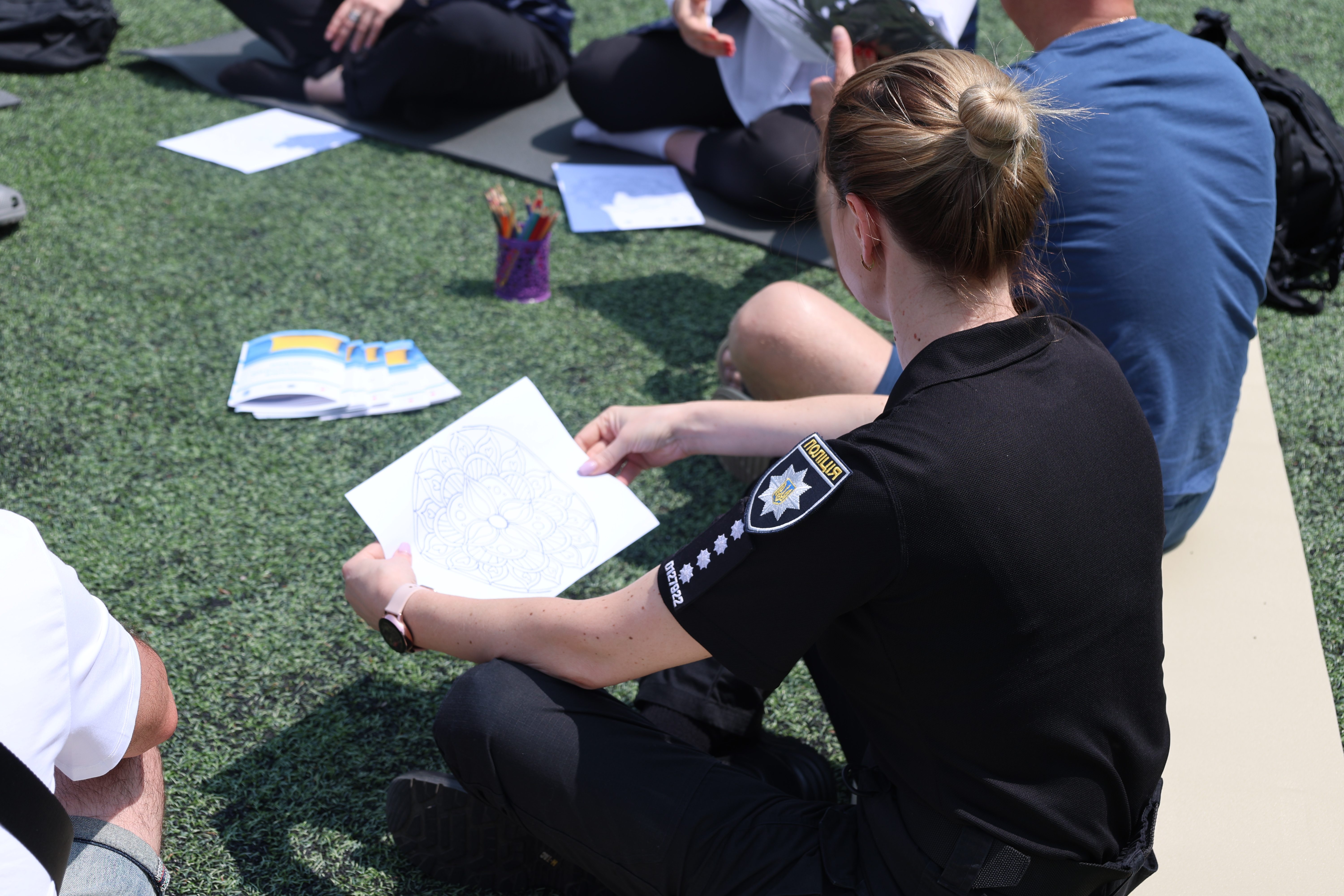 Під час заняття поранені правоохоронці створювали власні мандали — символічні малюнки, що допомагають зосередитися, зняти напругу та віднайти внутрішні ресурси для ментального відновлення.