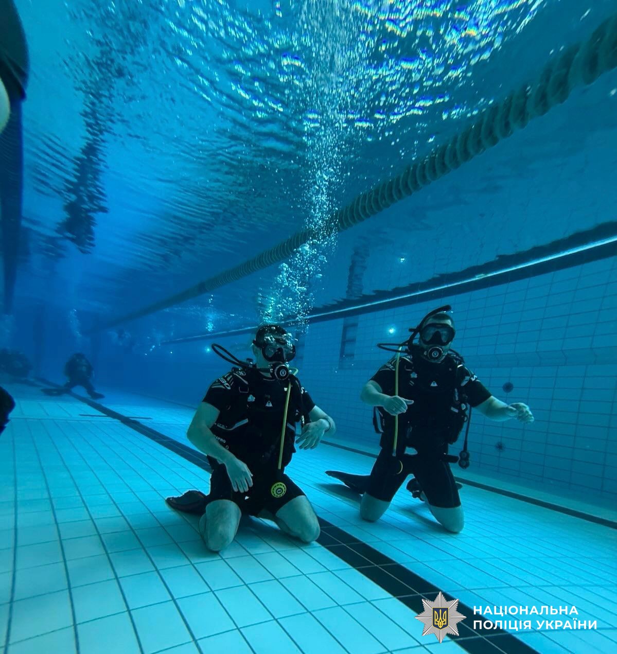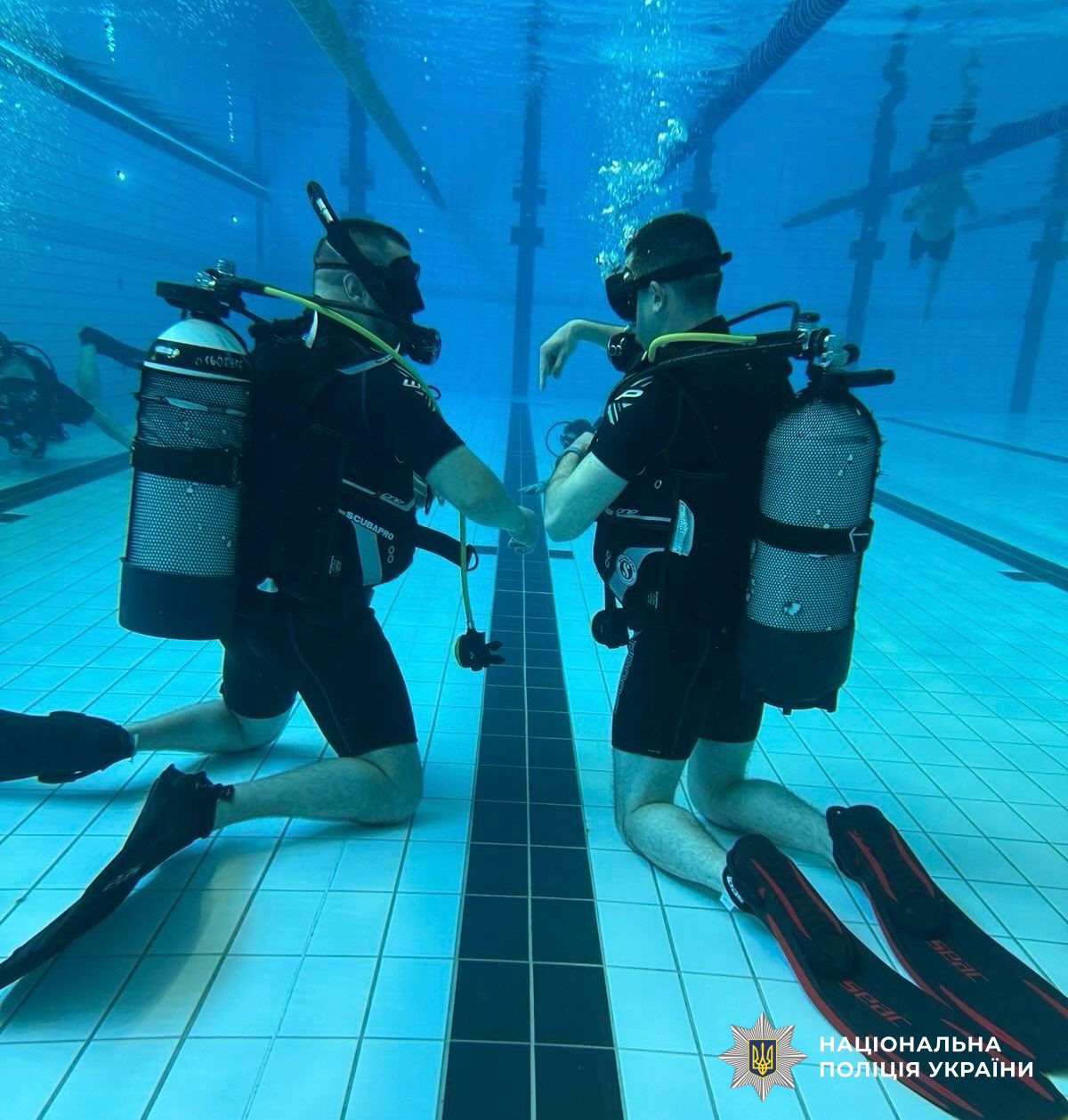 Правоохоронці працювали в гіпербаричній камері, тренувались на глибині до 50 метрів, опановуючи навички пошуку вибухових пристроїв під водою, техніку підйому підводних об’єктів, а також вчилися використовувати сучасне спеціальне обладнання для розмінування у складних умовах. Завдання були максимально наближені до реальних ситуацій, що можуть виникати під час очищення деокупованих територій України.