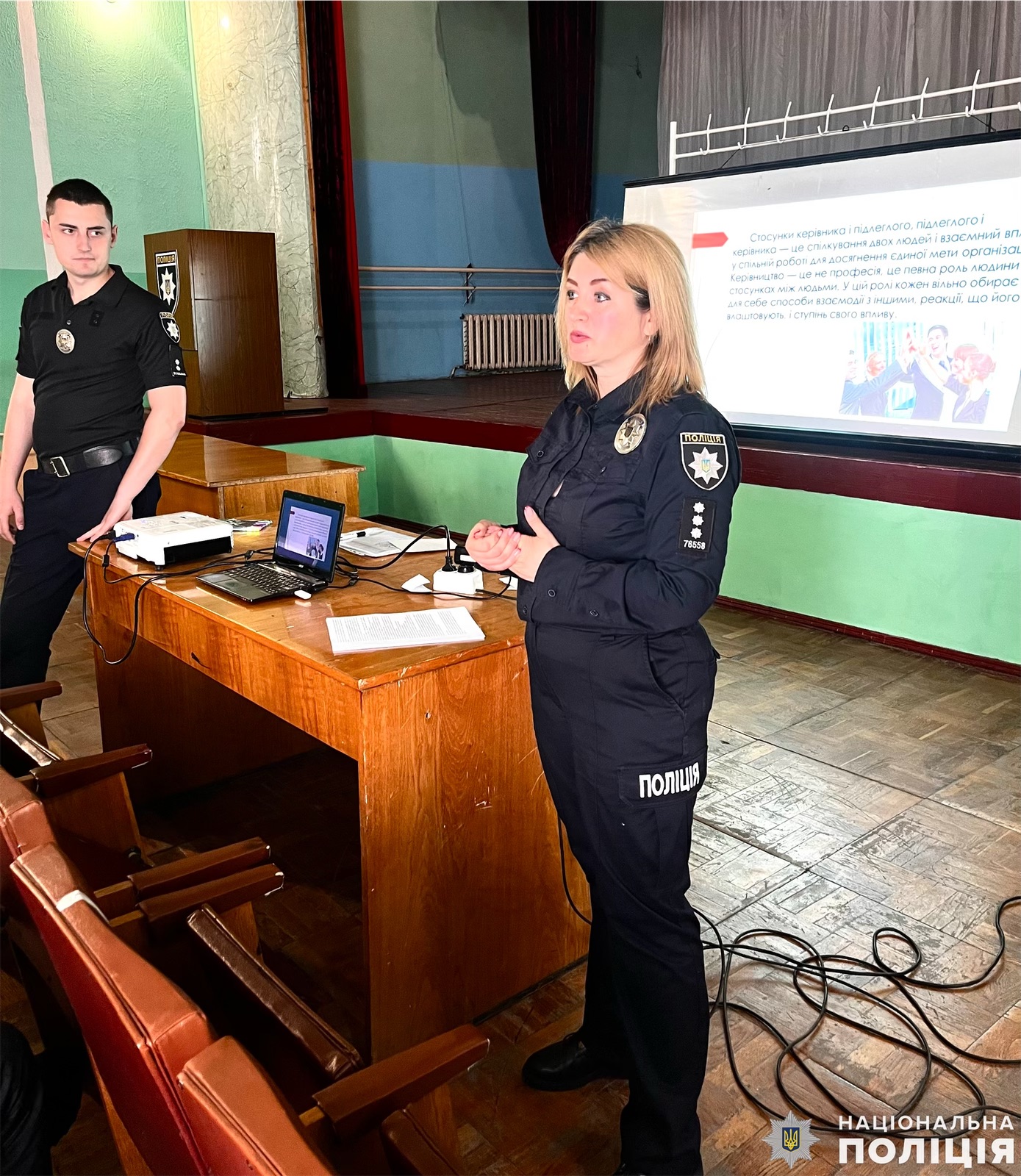 Сьогодні, 10 травня, у рамках реалізації проєкту Пункт психологічних практик поліцейські відділу психологічного забезпечення організували тренінг «Психологічні особливості керівника та стилі управління» для керівного складу Вознесенського райуправління поліції та підпорядкованих підрозділів.