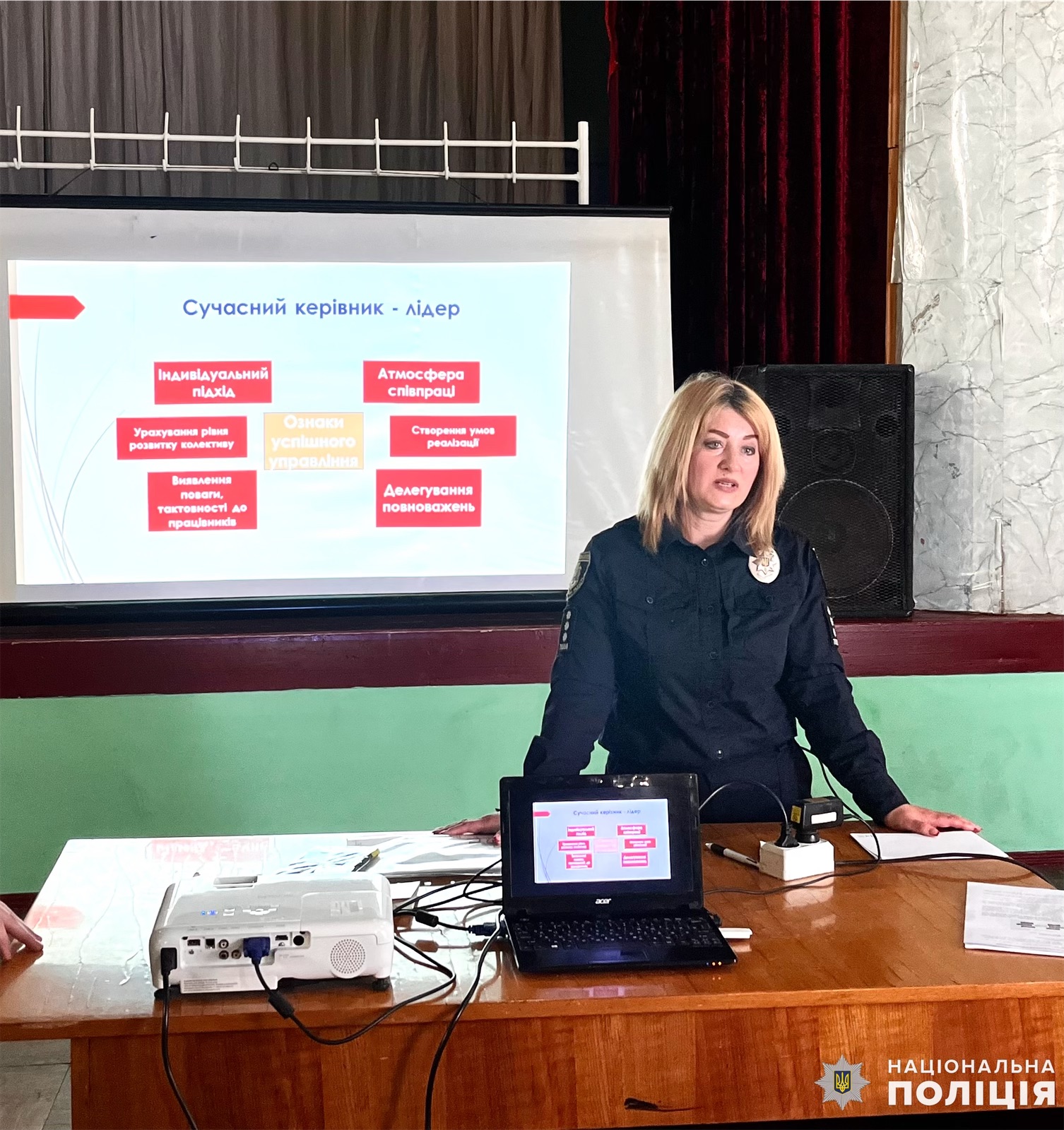 Поліцейські керівники виконували практичні вправи, які в подальшому сприятимуть покращенню навичок взаємодії у колективі та спільному вирішенню повсякденних завдань. Також правоохоронці моделювали різні проблемні ситуації, які трапляються під час виконання службових обов’язків і вдосконалювали свої ділові якості, які повинні бути притаманні успішному керівнику.
