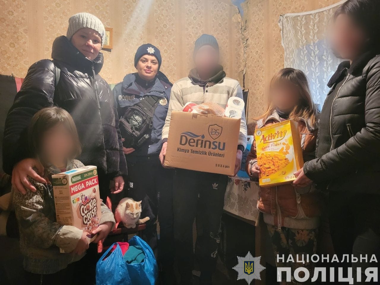 Продуктами харчування, побутовою хімією, посудом, одягом, канцелярією та іншими побутовими речами забезпечили сім’ю із смт Олександрівка, яка має на утриманні чотирьох неповнолітніх дітей та перебуває у складних життєвих обставинах, поліцейський офіцер громади Анна Біличенко спільно з працівниками комунальної установи «Центр надання соціальних послуг» та представниками служби у справах дітей Олександрівської селищної ради.