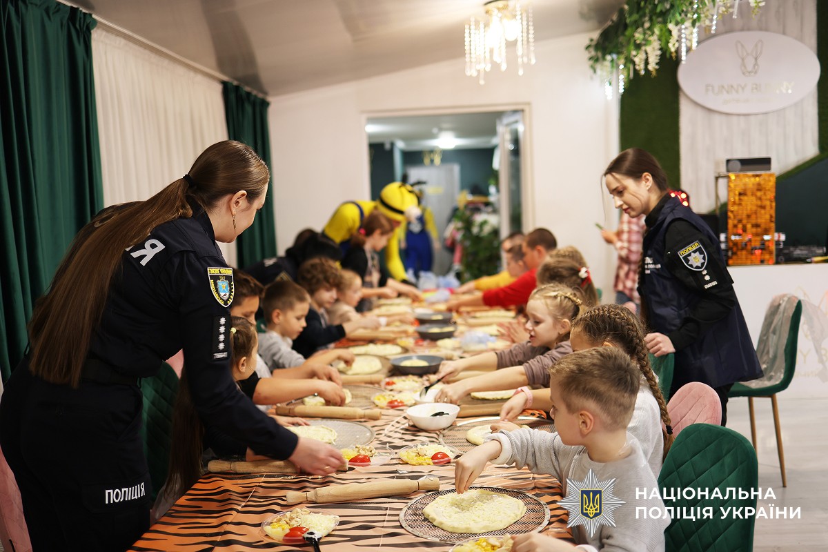 Для дітей загиблих та поранених поліцейських керівництво поліції Миколаївщини організували майстер-класи з виготовлення піци, морозива, попкорну, коктейлів, вікторину зі знання правил дорожнього руху, активності з аніматорами, після чого діти смакували власноруч приготовлені страви.