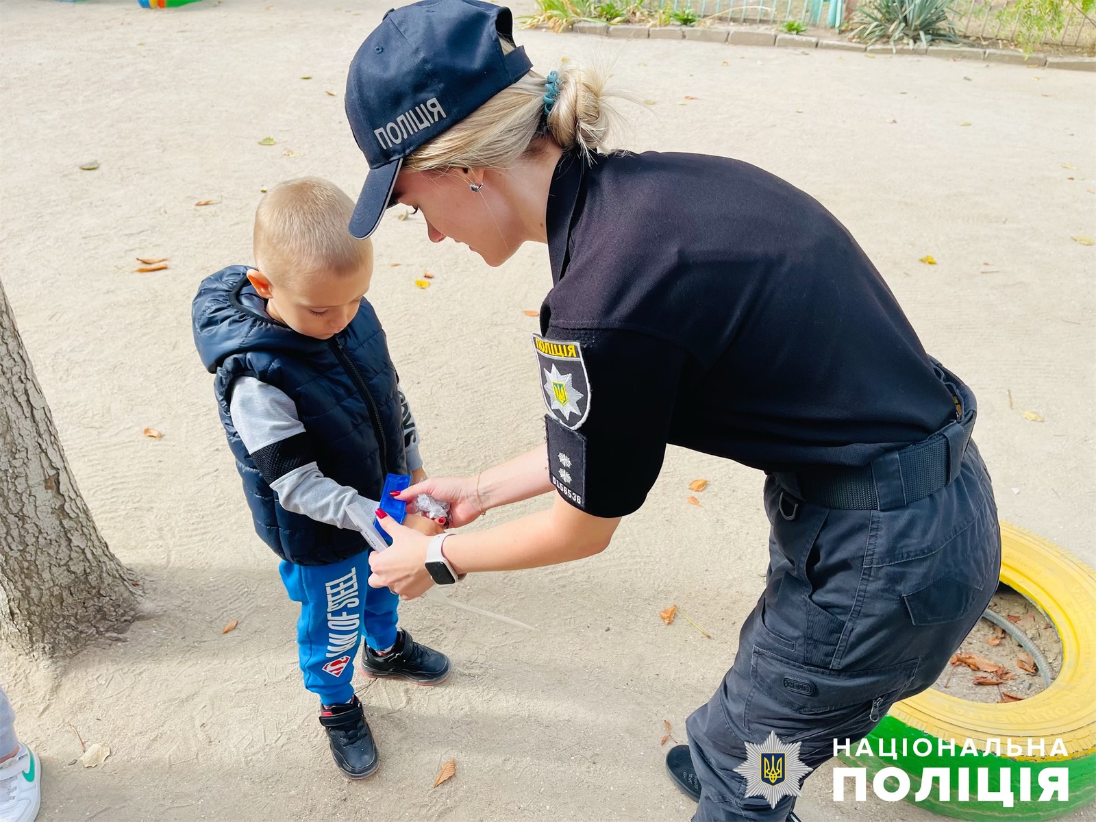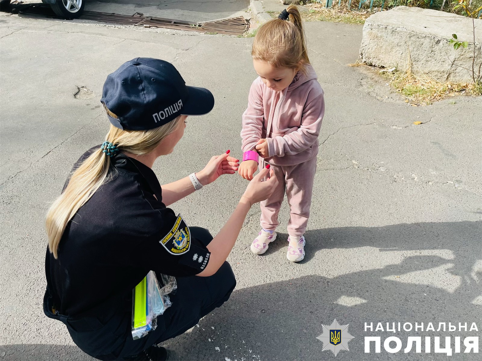 Подбай про безпеку – одягни флікер: поліцейські Миколаєва дарували дітям світловідбиваючі браслети