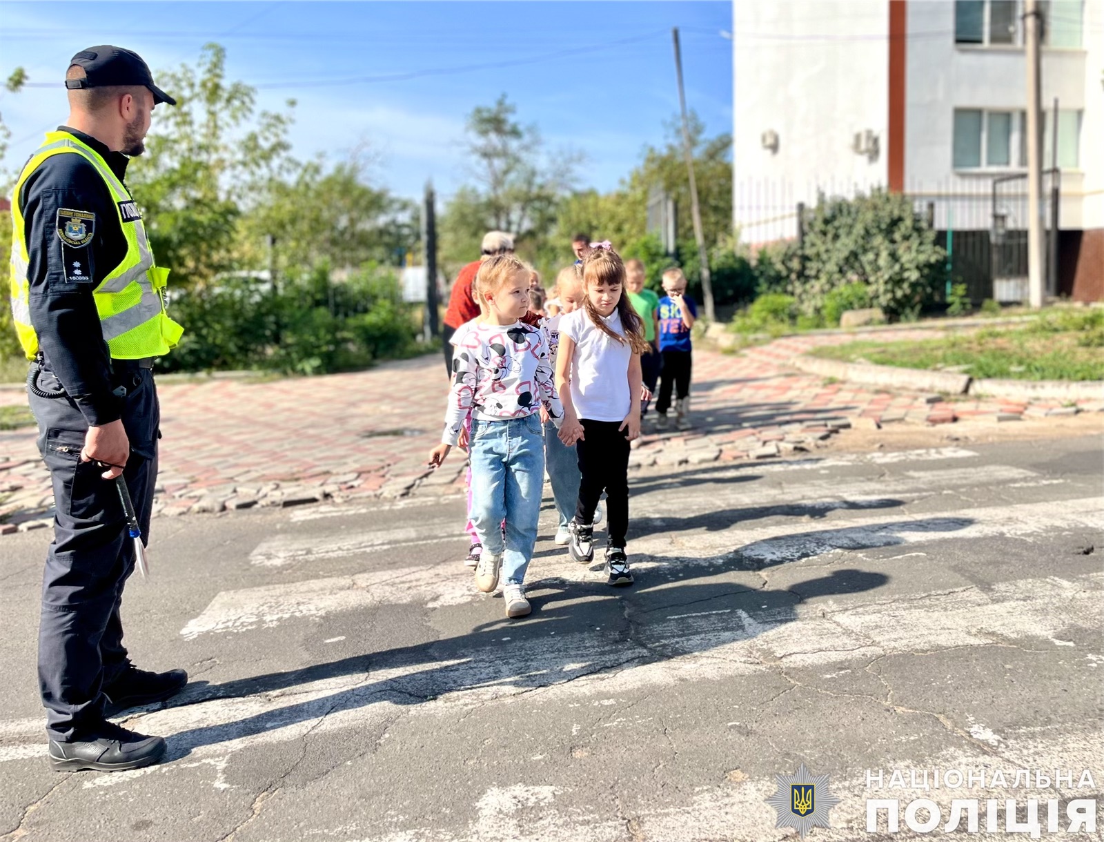 Офіцери громади навчали дітлахів основних правил безпечного перетину проїзних частин дороги, перехресть та нерегульованих пішохідних переходів.