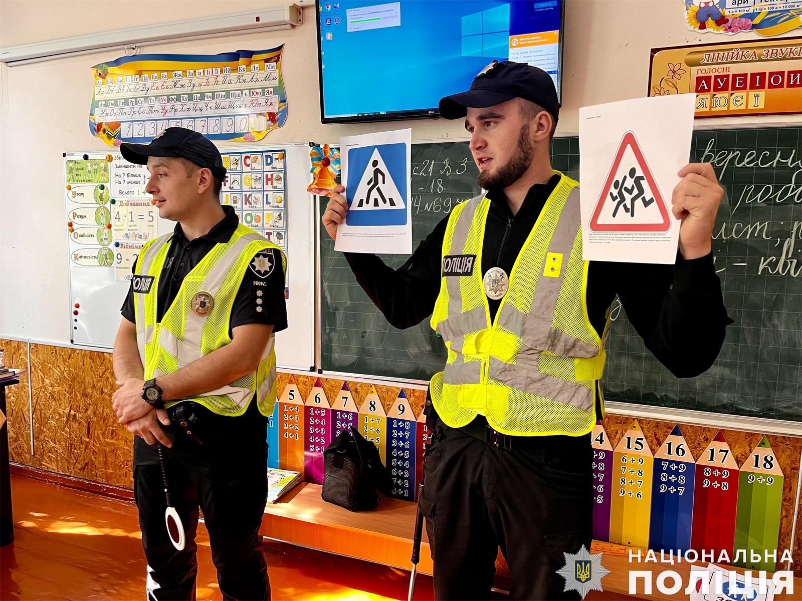 Заняття відбулося в ігровій формі, під час якого діти разом з поліцейськими вийшли до проїжджої частини та вчилися правильно переходити дорогу, розпізнавати вимоги дорожніх знаків та розглянули різні небезпечні ситуації, які можуть виникнути, рухаючись вулицями додому чи до навчального закладу. Окрім цього, офіцери громади пояснили учням про важливість використання світловідбивних елементів на одязі, речах чи взутті, щоб бути помітним для водіїв у темну пору доби.