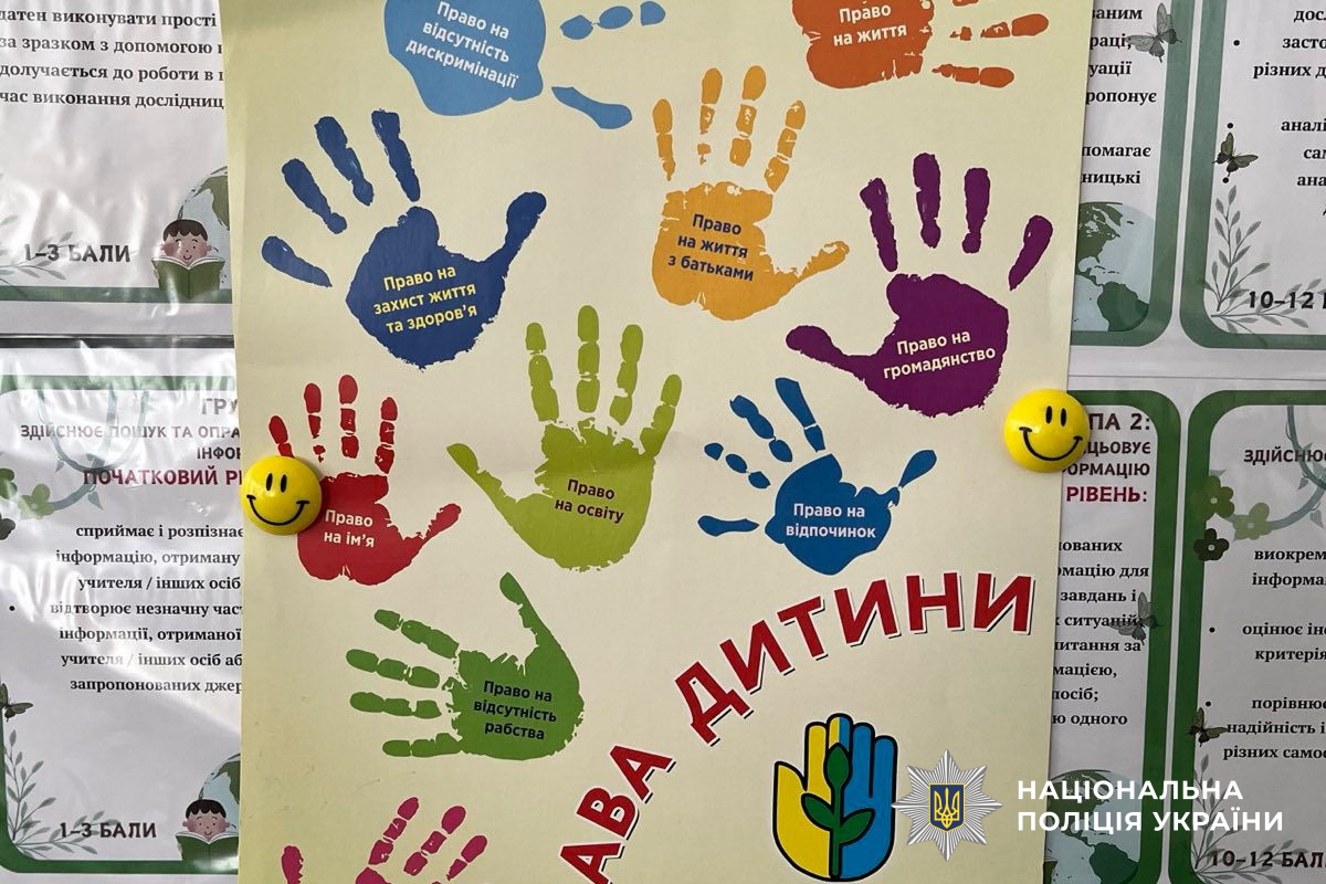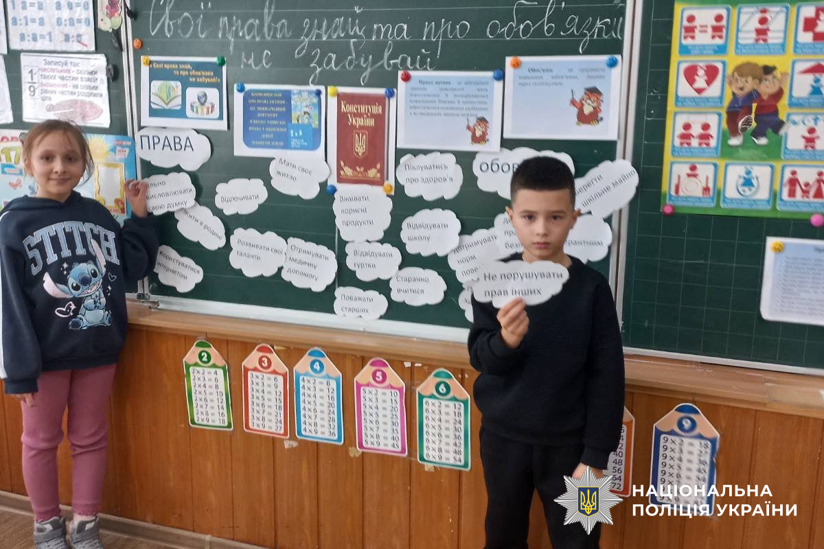 Під час заходів учні разом з поліцейськими обговорювали значення слова «право», розмірковували над тим, що необхідно кожній дитині для щасливого дитинства, а також знайомилися з ключовими положеннями Конвенції ООН про права дитини.