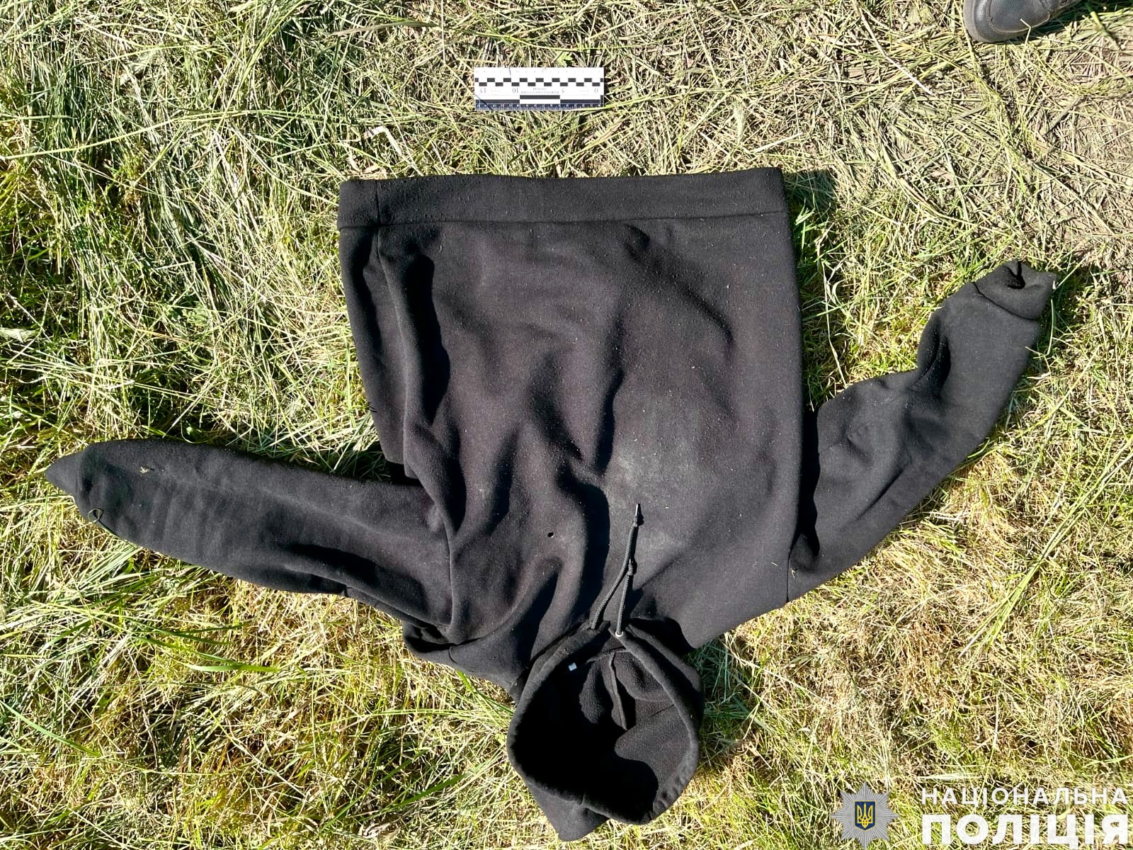 Під час проведення першочергових слідчих дій поліцейські встановили, що зловмисник заздалегідь підготувався до вчинення злочину, одягнув чорну кофту з капюшоном та маску на обличчя. Аби приховати сліди злочину, викинув телефон, маску та верхній одяг на березі річки.