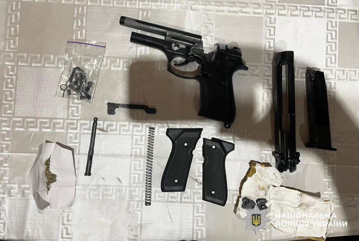 У ході санкціонованих обшуків за місцями мешкання фігурантів правоохоронці вилучили частини предмета ззовні схожі на пістолет, дві гранати та два підривачі.