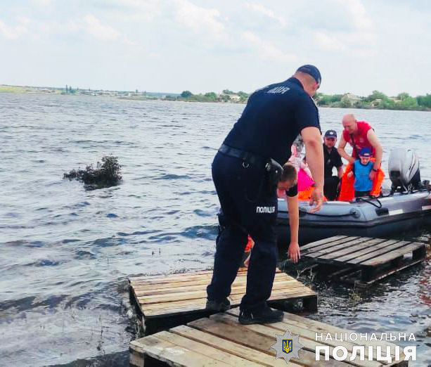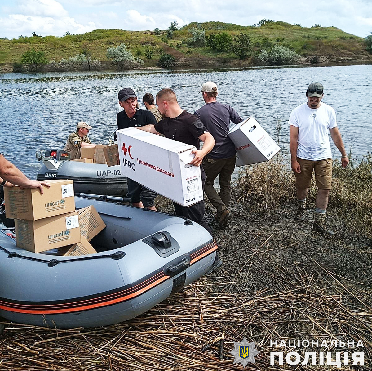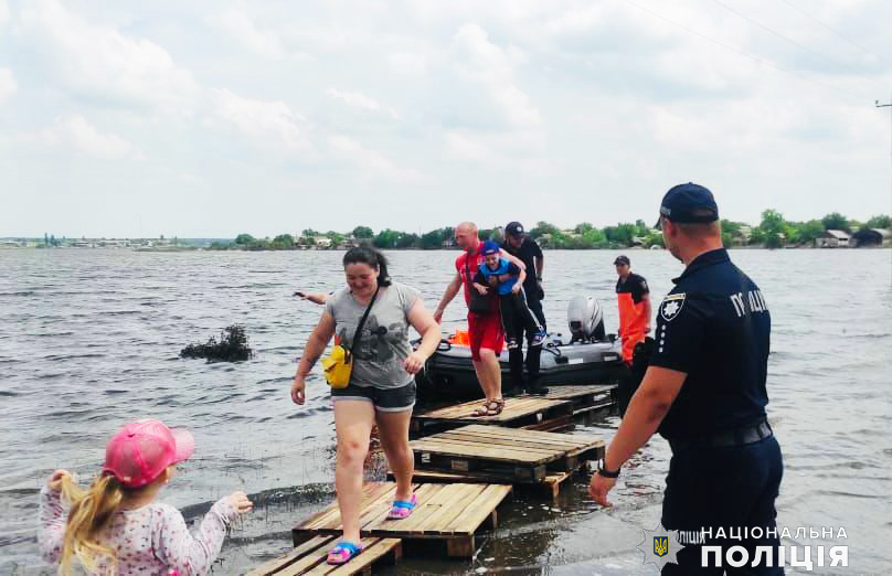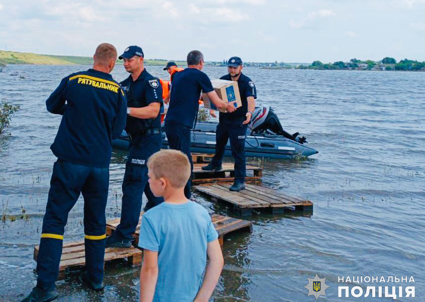 Поліцейські та інші профільні служби допомагають мешканцям селищ Афанасівка та Новотимофіївка, що на Снігурівщині, повернутися у свої домівки, які були підтоплені внаслідок підриву окупантами Каховської ГЕС.