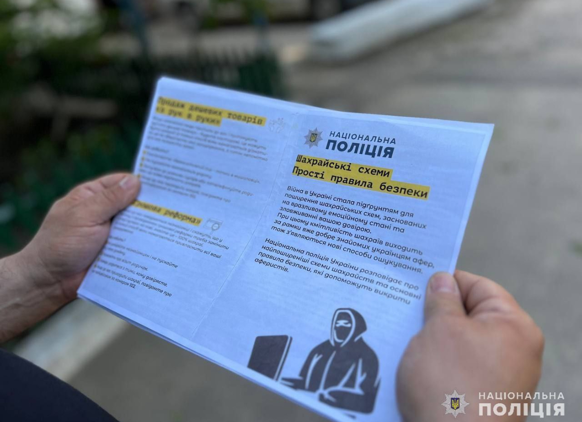 Поліцейські проінформували громадян про найпоширеніші схеми шахрайства, зокрема: фальшиві дзвінки від “представників банку”, продаж дешевих товарів через інтернет та шахрайство під виглядом соціальних виплат під час війни. Та наголосили, що для того, щоб уникнути пасток аферистів, слід дотримуватись таких порад :