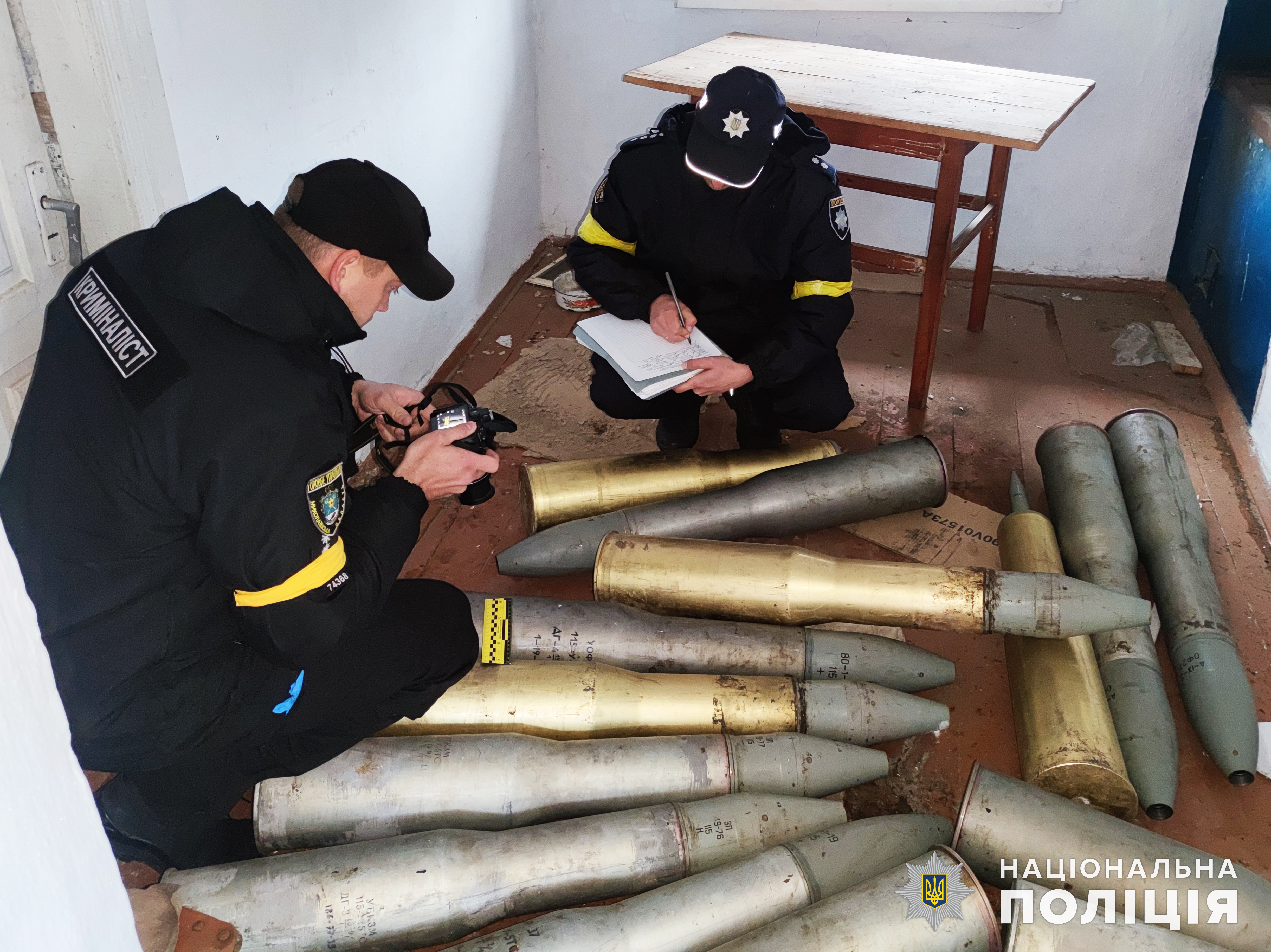 Лише сьогодні у одному зі звільнених населених пунктів правоохоронці вилучили 62 артснаряда калібром 115 мм та підривач типу УДЗ на розтяжці, який перебував на території одного з домоволодінь. Усі вибухонебезпечні предмети були знищені фахівцями вибухотехнічної служби поліції.