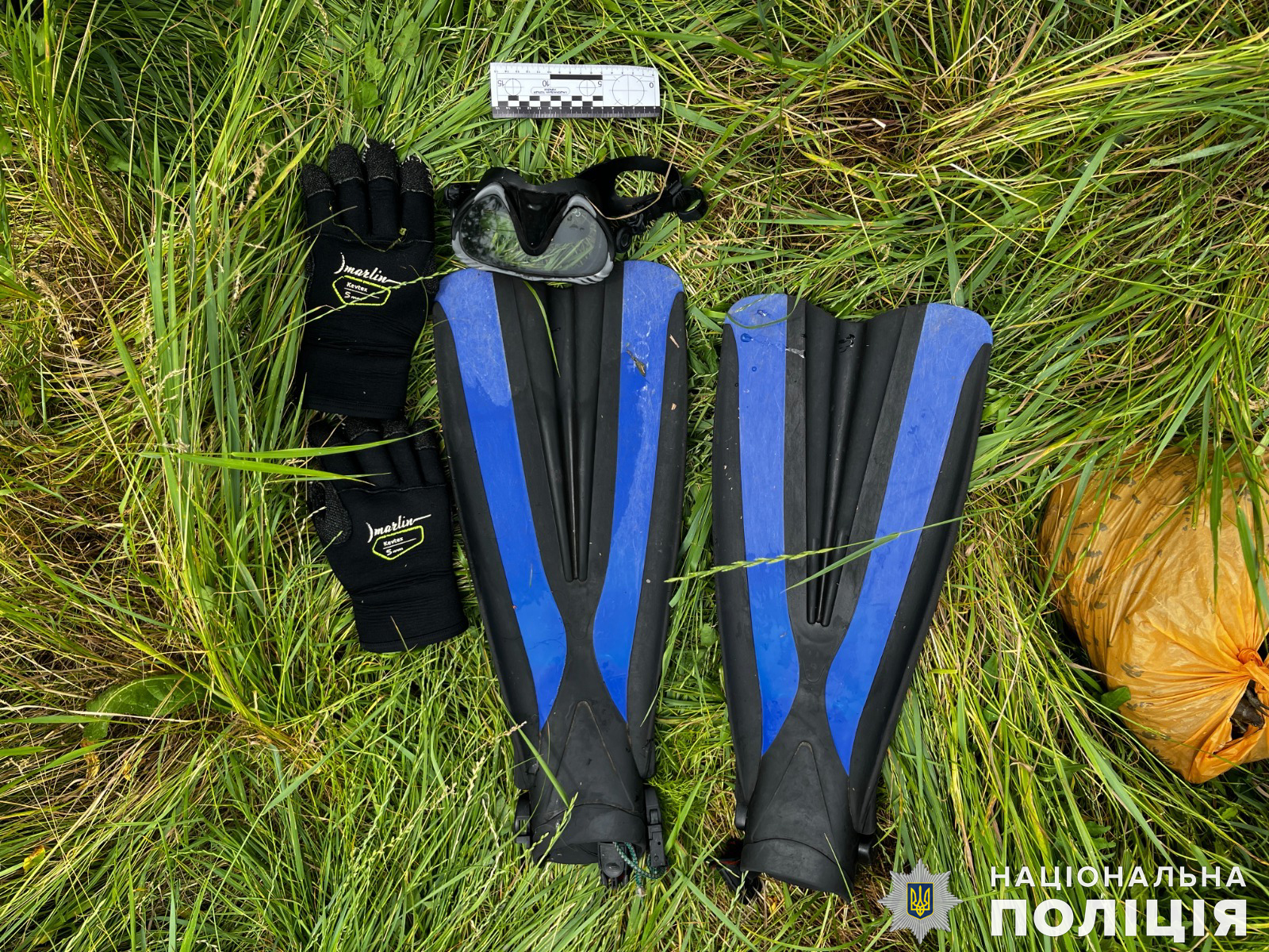 Попри заборону, 25-річні правопорушники незаконно ловили раків та підготували для цього все необхідне – неопреновий костюм, водолазні ласти, маска з дихальною трубкою.
