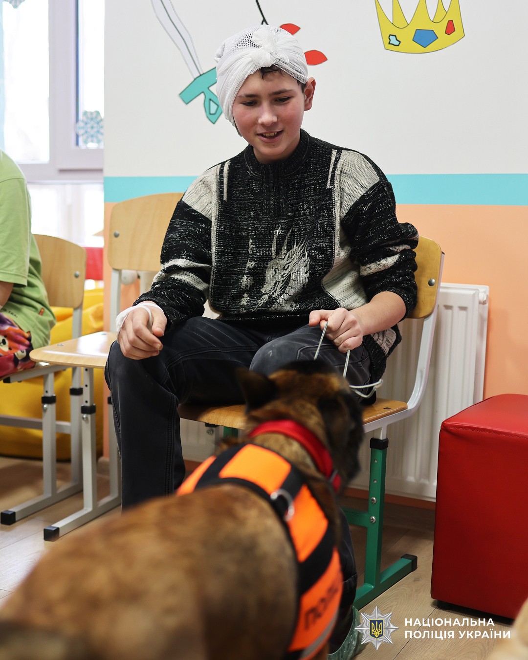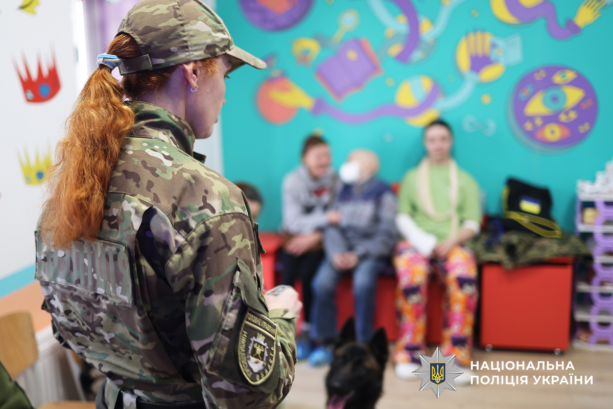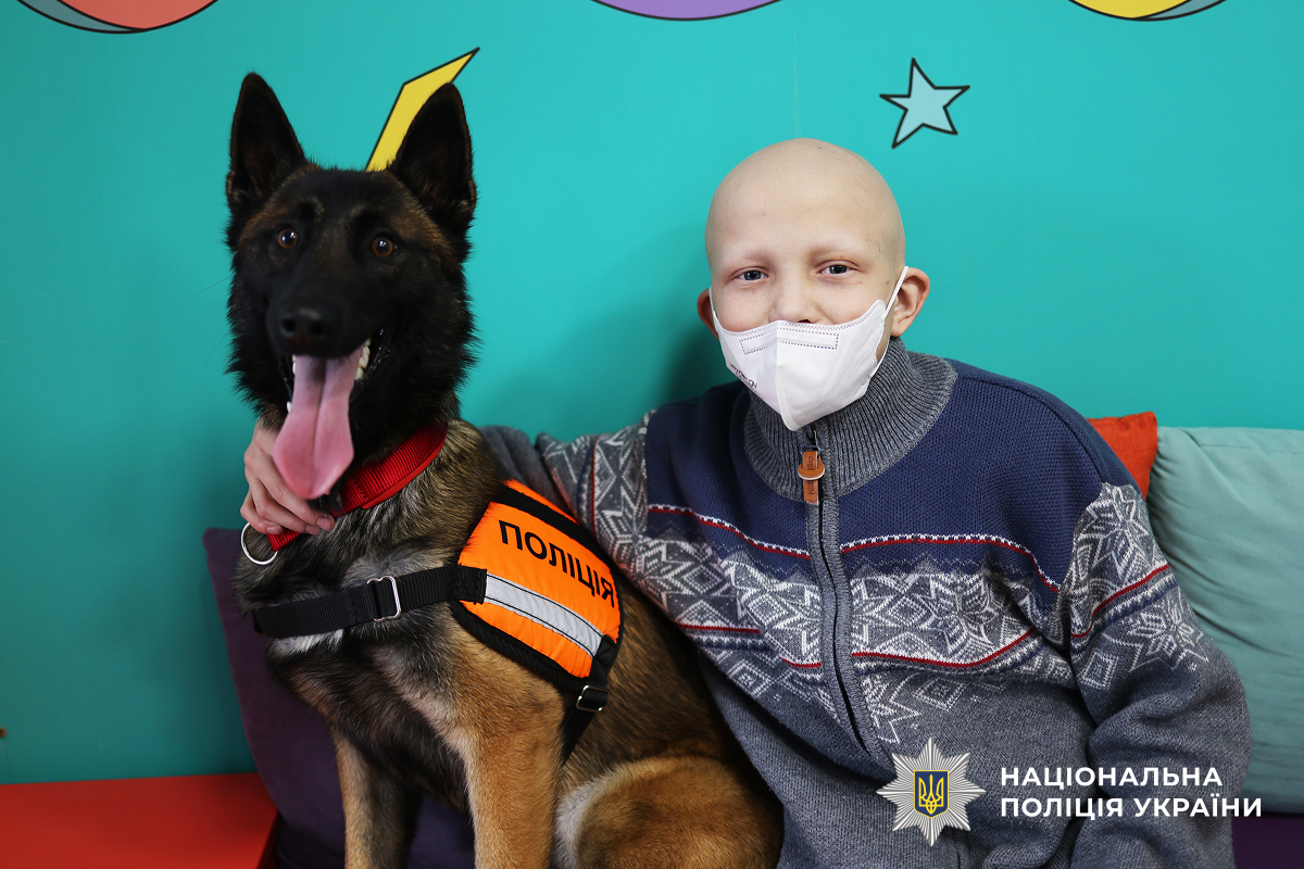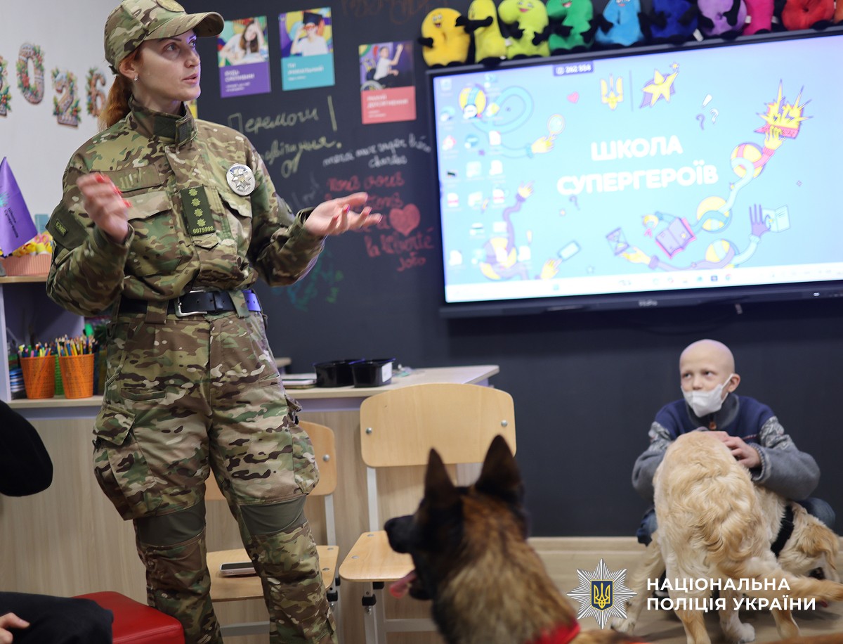 Інспекторки кінологічного центру обласного главку поліції завітали до маленьких пацієнтів, які проходять лікування у Миколаївській обласній дитячій клінічній лікарні. У затишній кімнаті освітнього центру державної установи «Школа супергероїв», що функціонує на базі медзакладу, на дітей чекала особлива зустріч з чотирилапими підопічними правоохоронців.