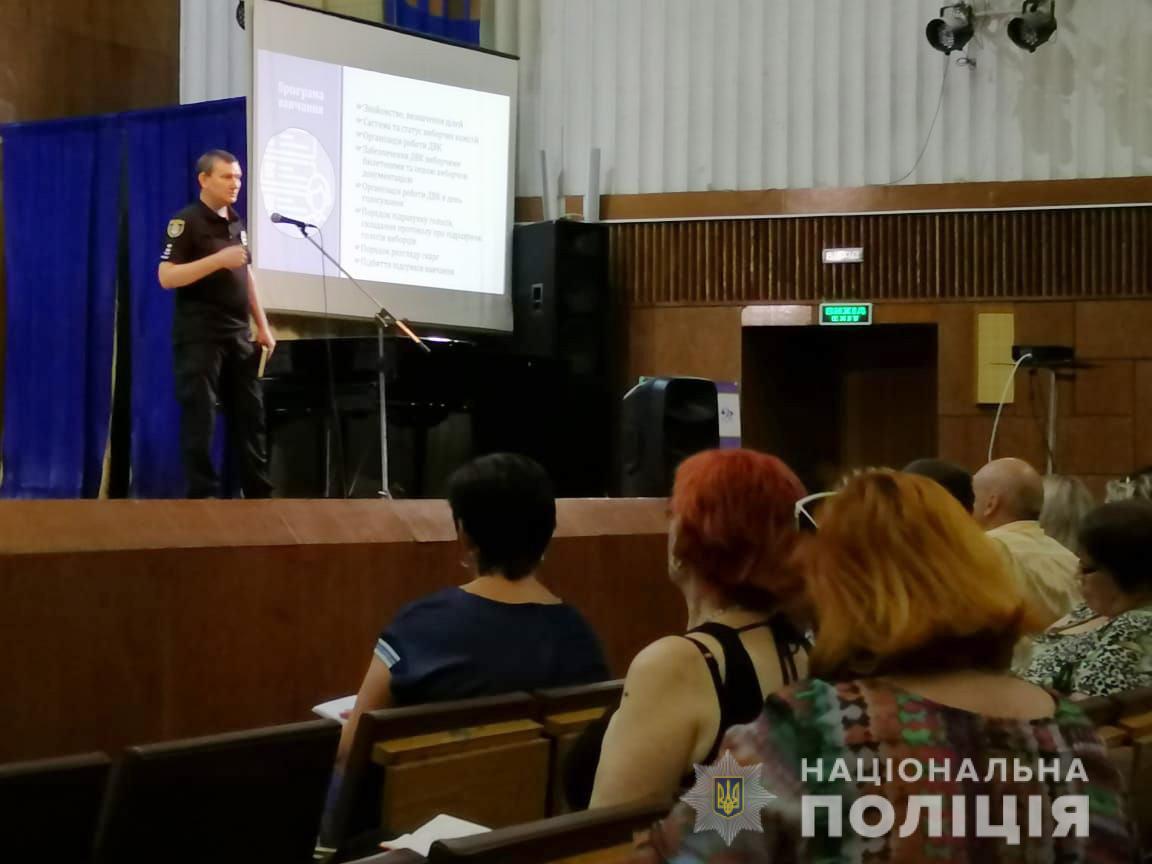 11 червня на зустрічі з присутнім головам та секретарям виборчих дільниць правоохоронці обговорили адміністративну та кримінальну відповідальність у разі порушення виборчого законодавства, різні поняття виборчого процесу та права і обов’язки суб’єктів.