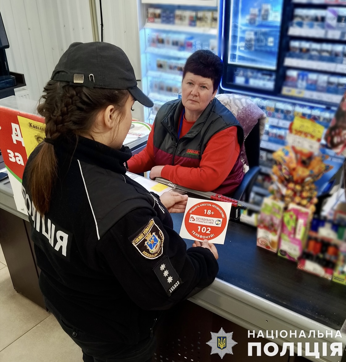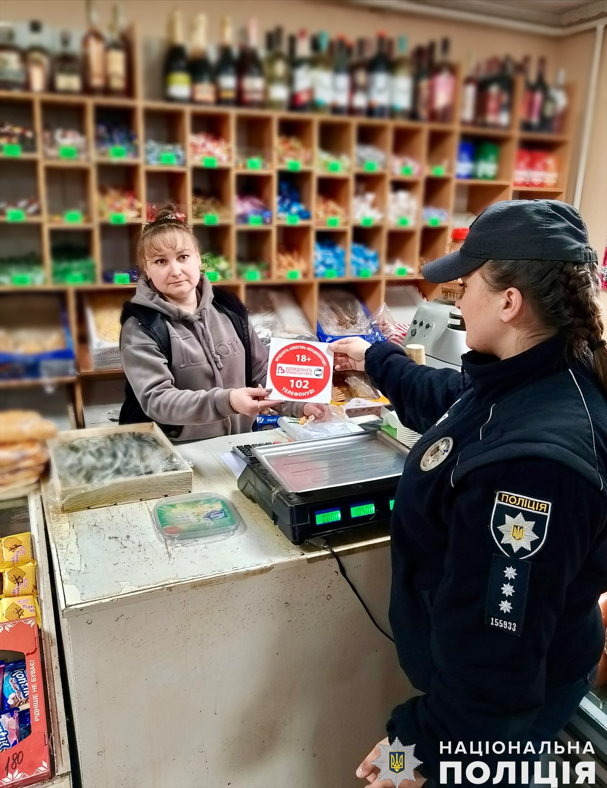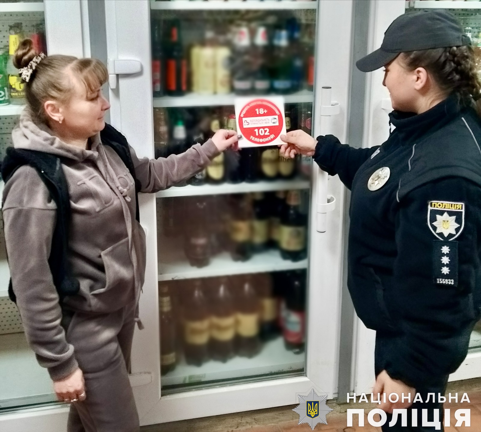 У кожному із відвіданих закладів торгівлі поліцейська розмістила інформаційні наліпки, що нагадуватимуть про заборону продажу підліткам підакцизних товарів.