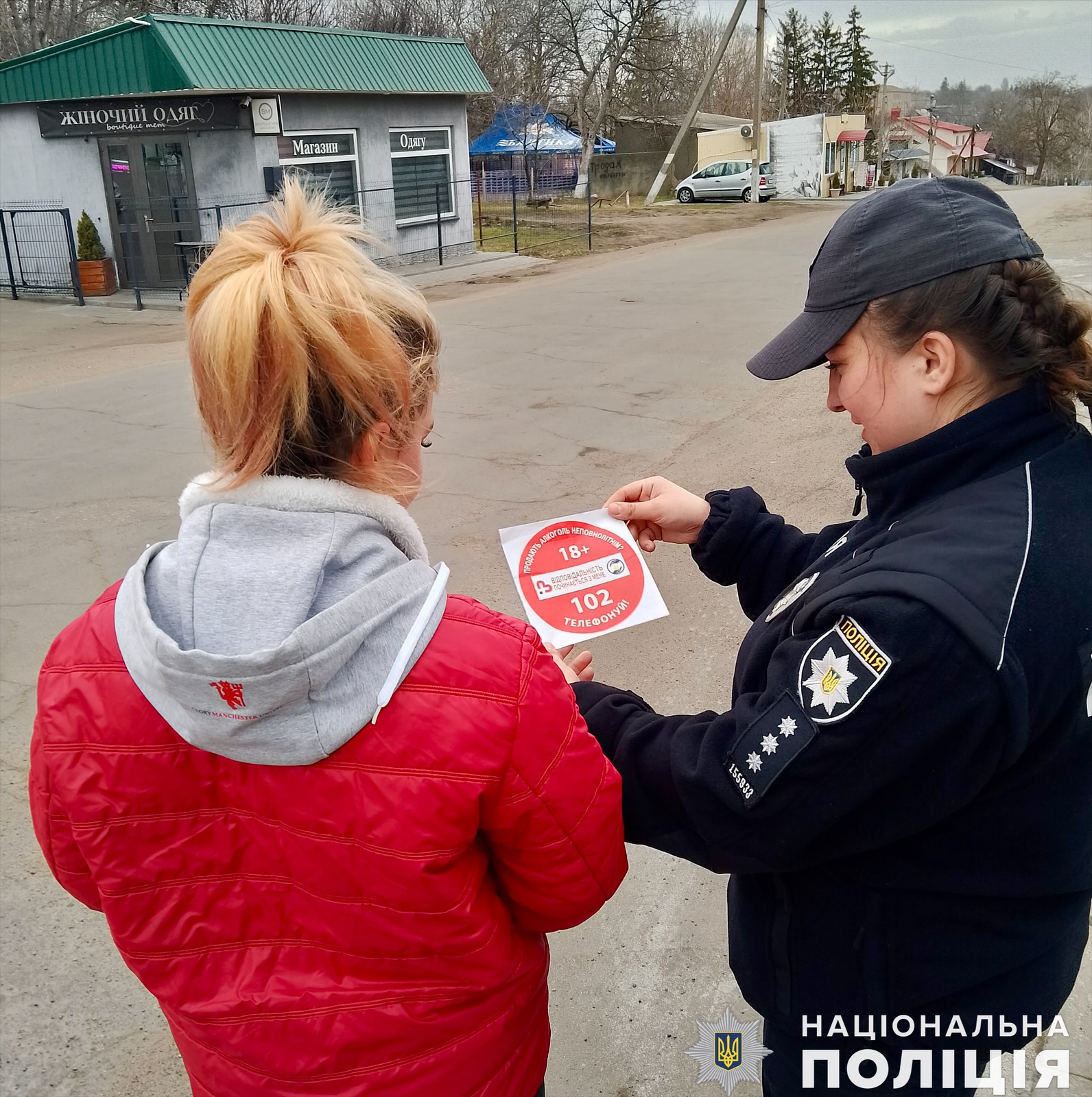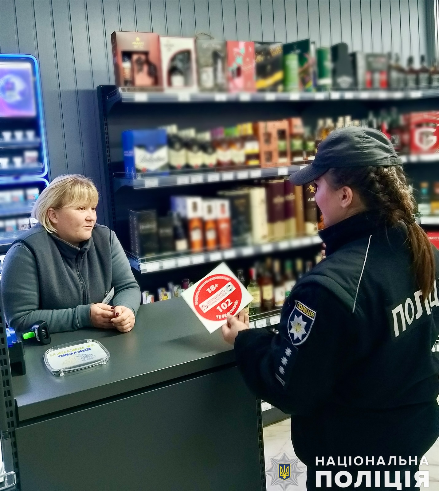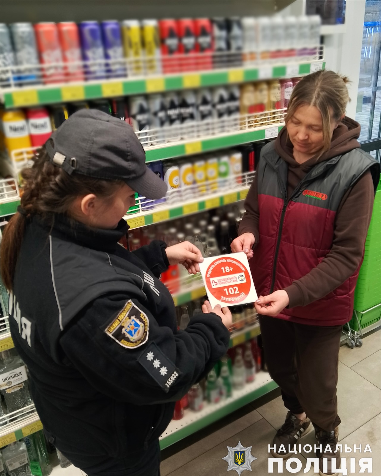 У кожному із відвіданих закладів торгівлі поліцейська розмістила інформаційні наліпки, що нагадуватимуть про заборону продажу підліткам підакцизних товарів.