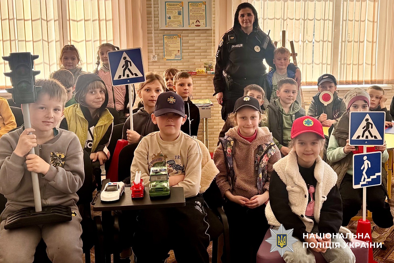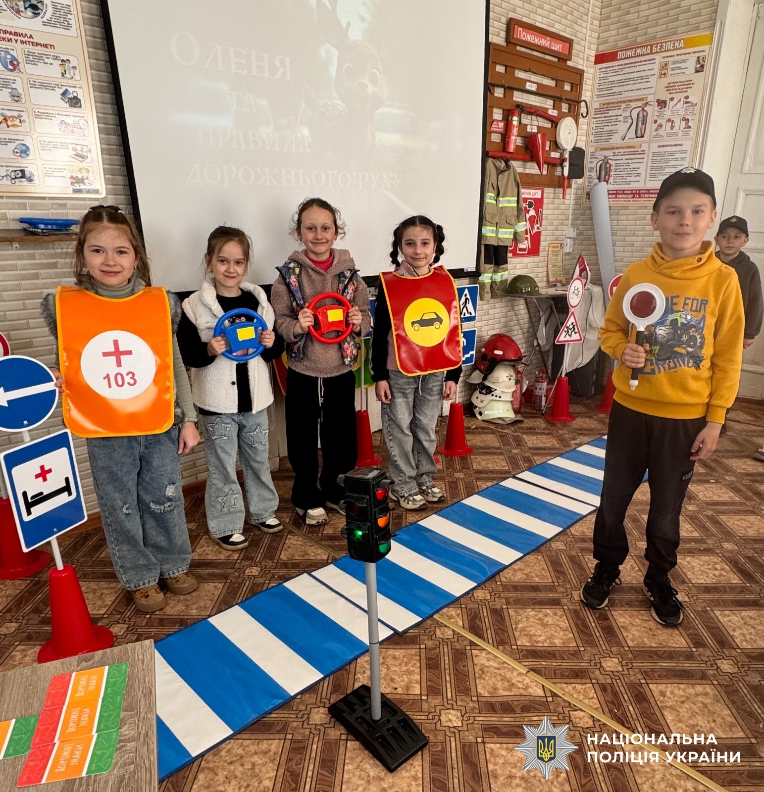 Під час перегляду казки про дорожній рух поліцейська розповіла дітям про вимоги до пішоходів, як безпечно дістатись до ліцею та про небезпеку ігор поблизу дороги. Окремо поліцейська нагадала юним слухачам, що тротуаром потрібно йти якомога далі від проїзної частини. Переходити дорогу лише на пішохідному переході та на зелене світло світлофору. Завжди слід зупинятися перед тим, як перейти вулицю і переконатися, що всі водії зупинилися. Не вибігати на дорогу раптово, навіть, якщо поруч немає автомобілів. Офіцерка закликала ліцеїстів прогулюватися та гратися лише у безпечних місцях, а у темний час доби завжди носити на одязі світловідбивні елементи, щоб бути помітними для водіїв.