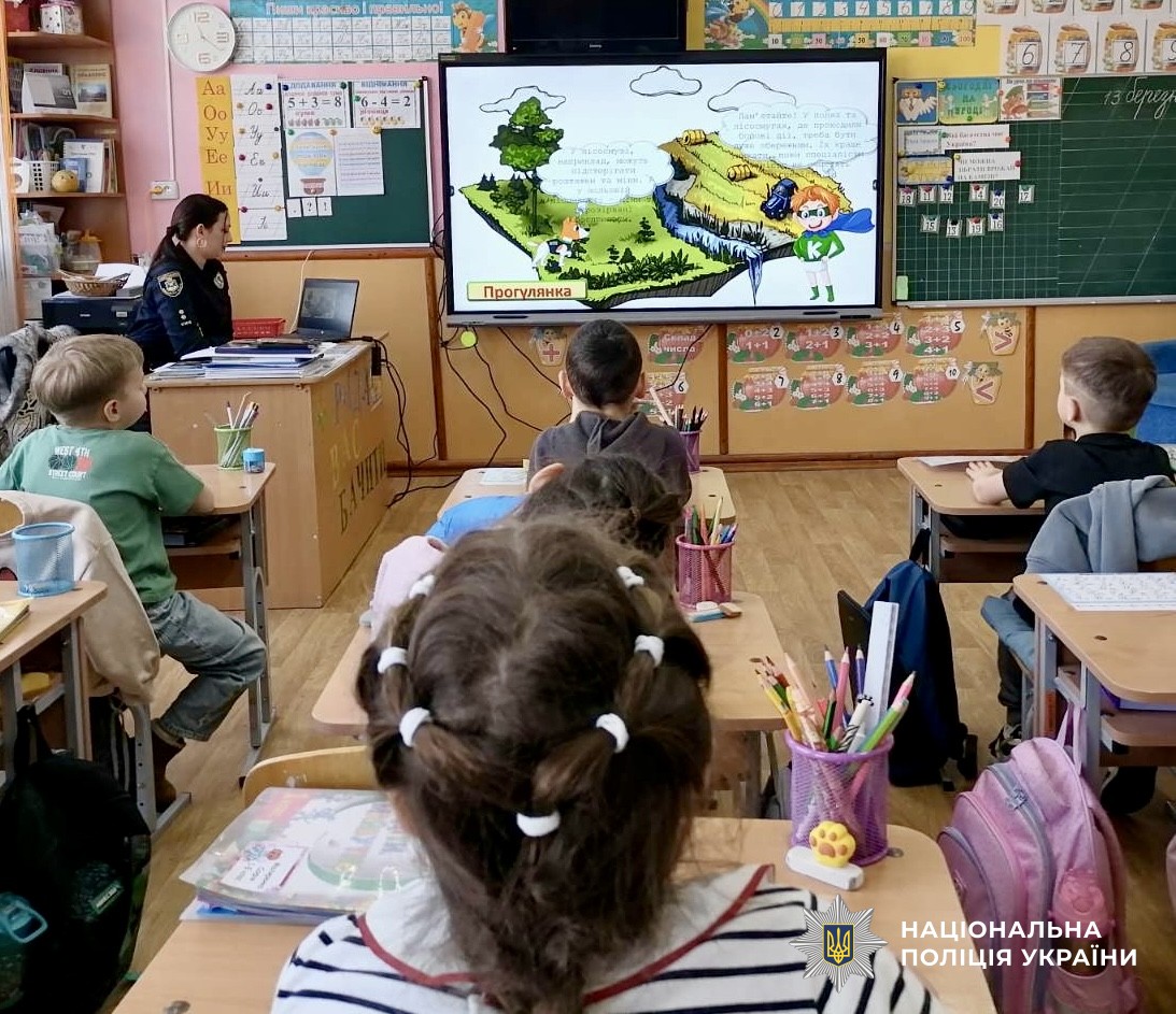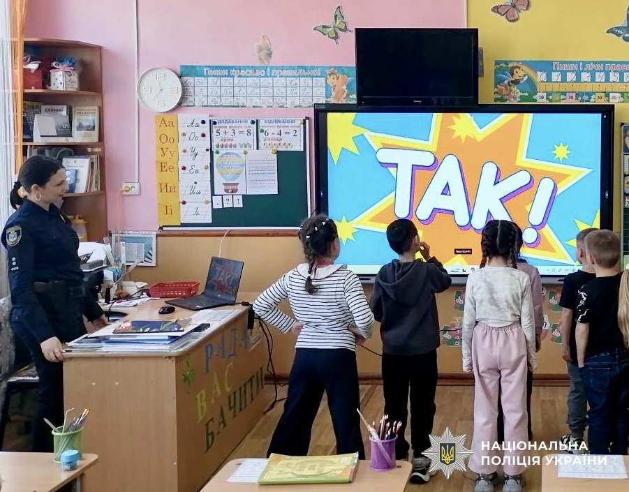 За допомогою мультфільму та різноманітних інтерактивних вправ поліцейська змоделювала для першачків різні ситуації та вони спільно відпрацювали алгоритм дій у разі виявлення небезпечної знахідки.