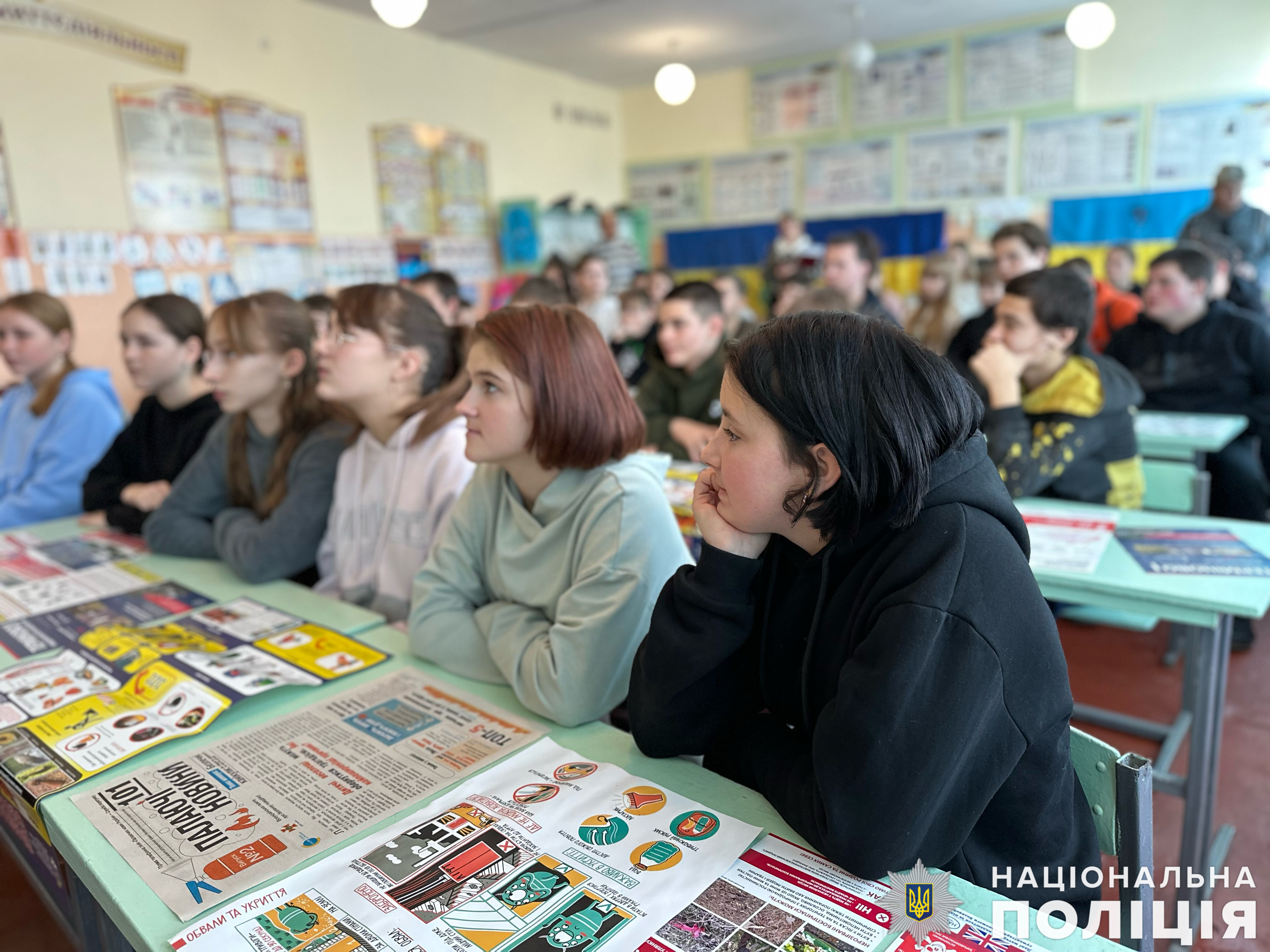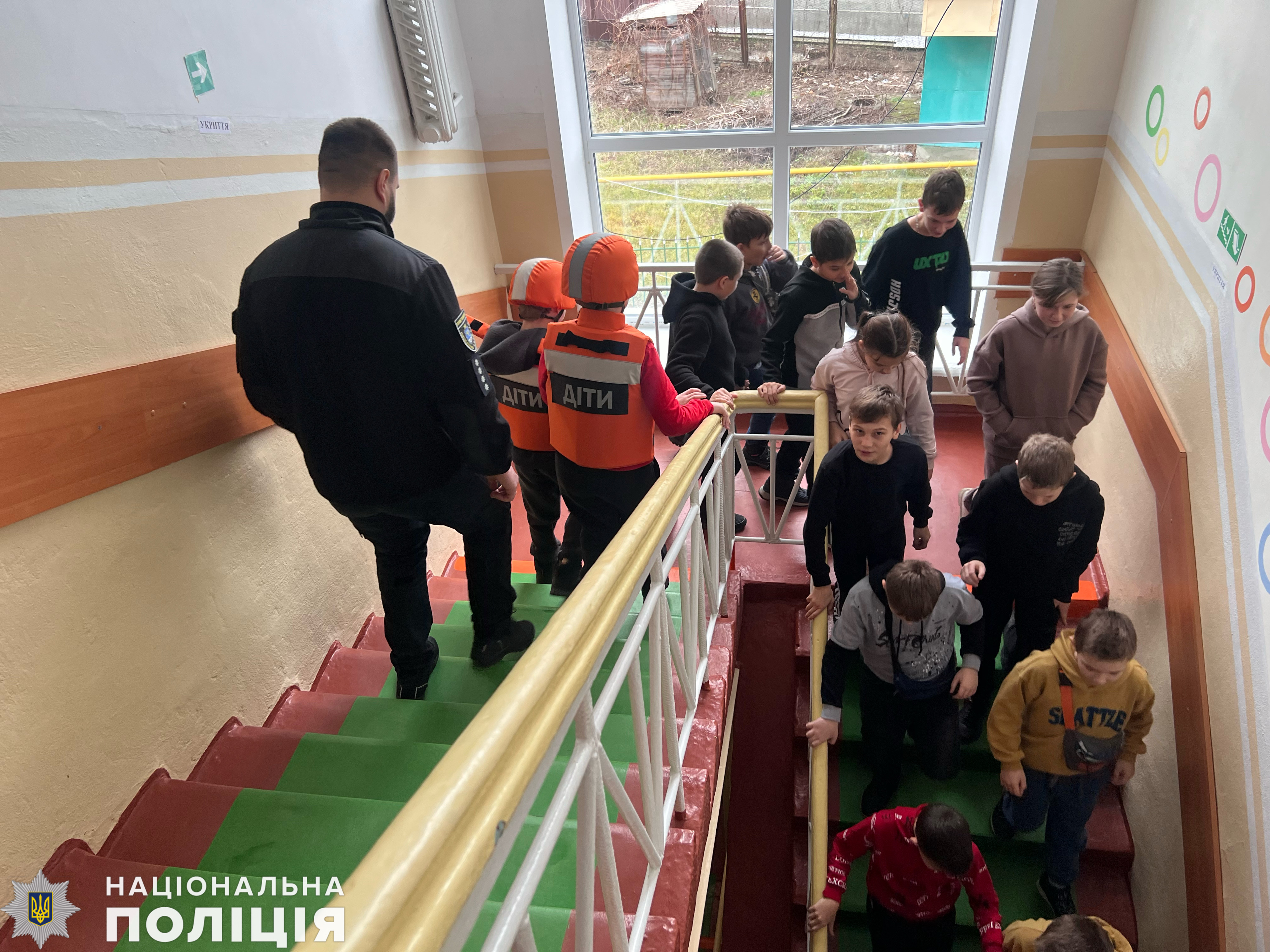 Ювенали та патрульні поліцейські звернули особливу увагу учнів на алгоритм дій під час сигналу «Повітряна тривога». Поліцейські разом із дітьми провели тренувально-евакуаційні заходи, під час яких школярі одягали засоби особистого захисту - бронежилети та каски. Та наголосили, що пересуватись до укриття потрібно без паніки, організовано, вишикувавшись попередньо колоною.