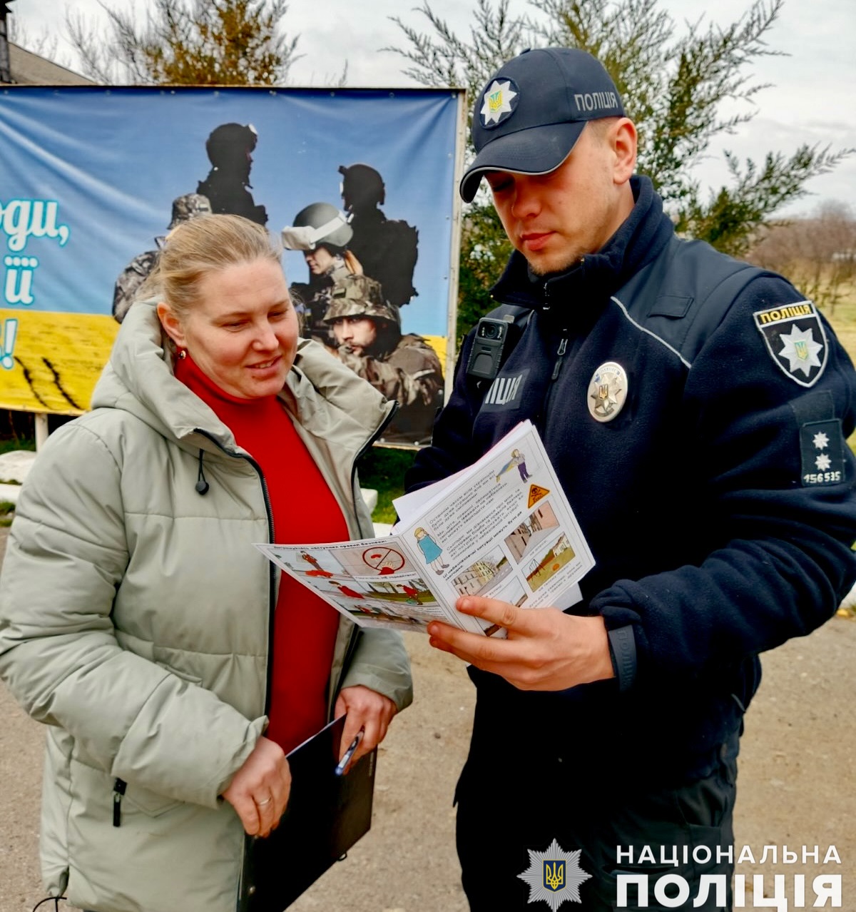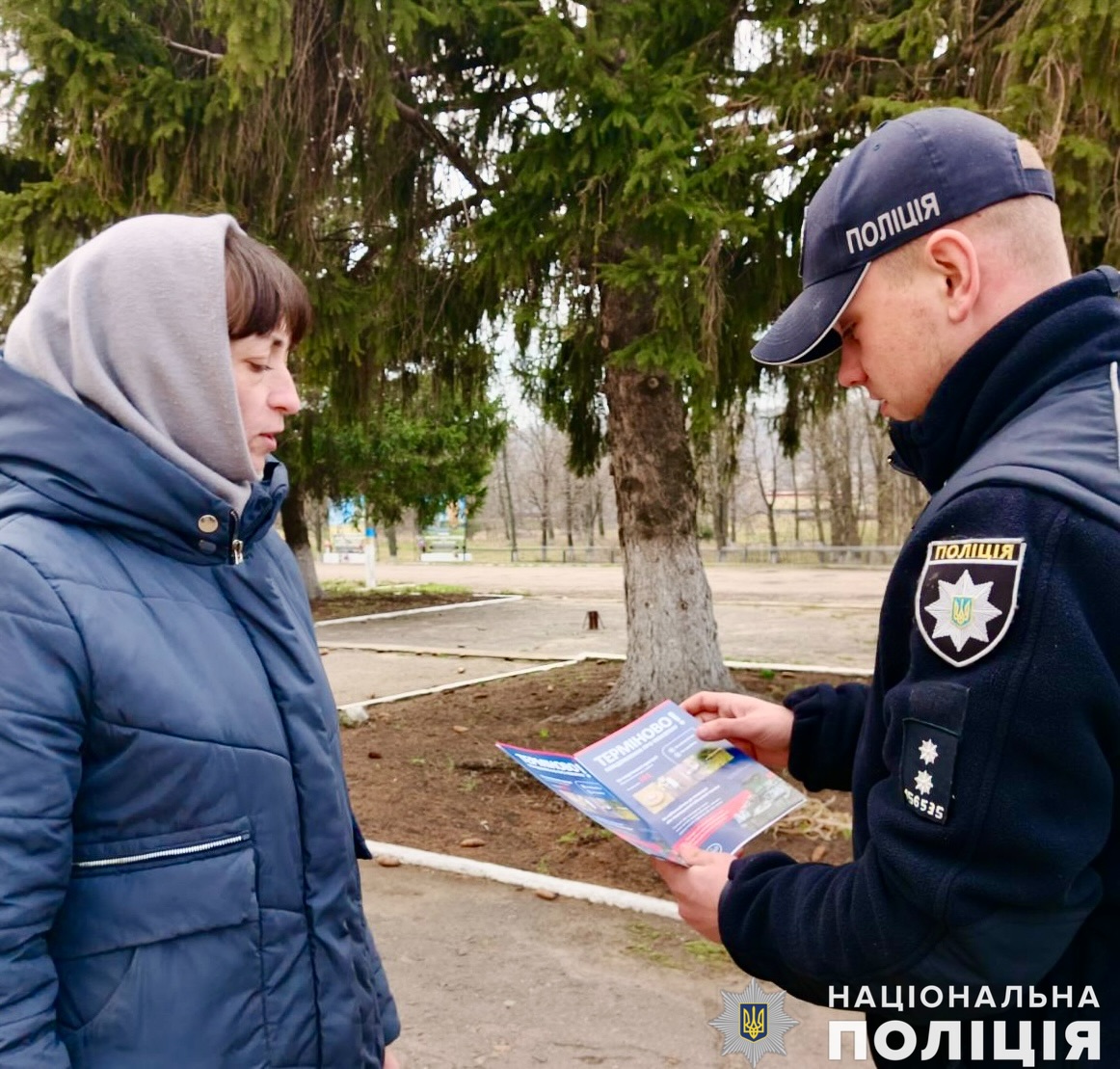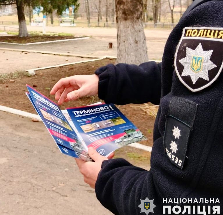 Поліцейський надав жителям громади інформаційні буклети та закликав пам’ятати, що від правильності дій залежить здоров’я і життя кожного.