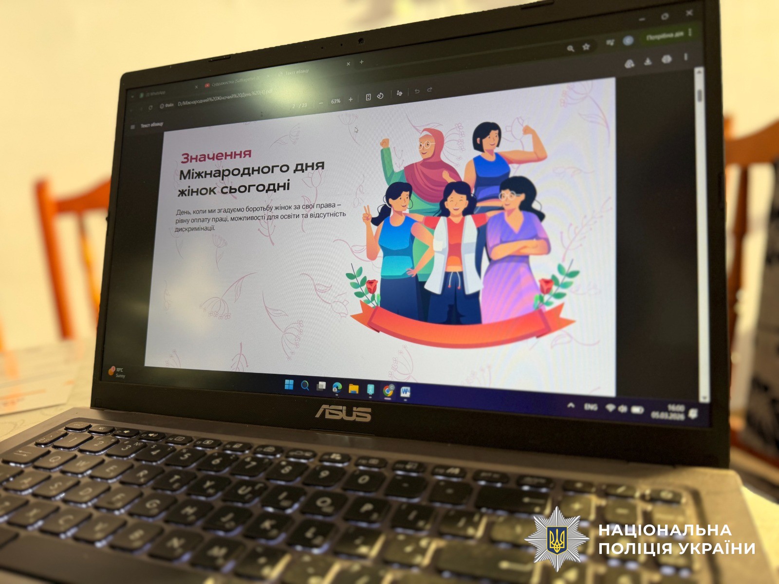 Поліцейська розповіла учасницям про роль жінок у сучасному світі, підкреслила важливість рівних прав і можливостей, необхідність подолання гендерних стереотипів та формування культури поваги до прав людини. Присутні активно долучалися до обговорення, ділилися власним досвідом і думками про те, як нині змінюється ставлення до прав і можливостей жінок.