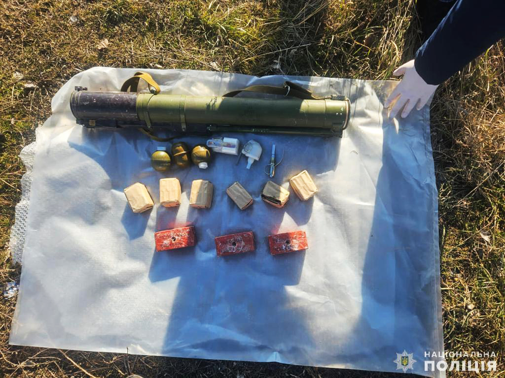 На місці події правоохоронці вилучили ручний протитанковий гранатомет, дві ручних гранати наступальні, ручну гранату дистанційну, чотири підривачі до них, три тротилові шашки, 180 набоїв калібром 5,45 мм та 10 тисяч гривень, які фігурант отримав за продаж зброї.