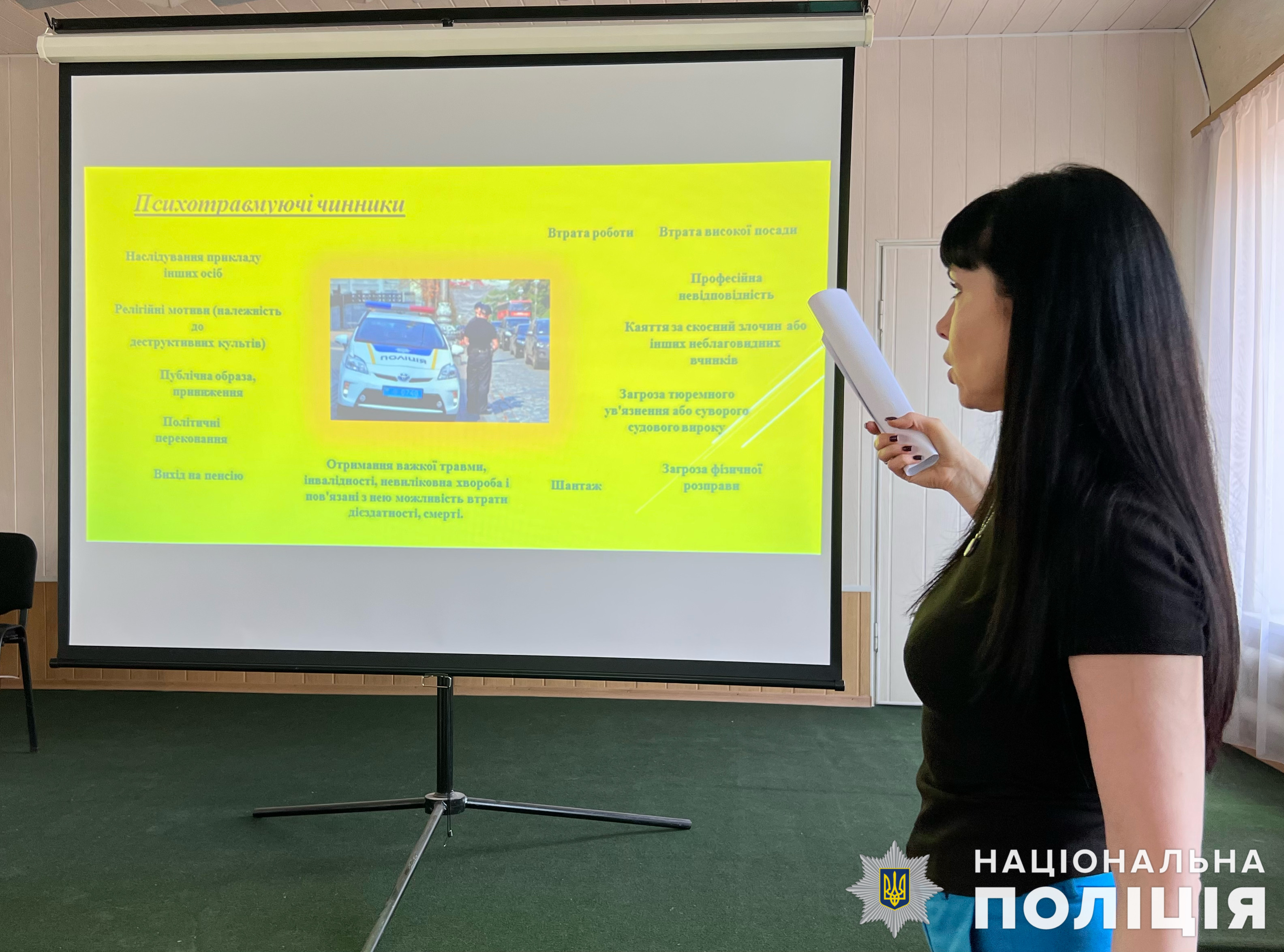 За допомогою практичних завдань поліцейські навчилися розрізняти поведінкові індикатори людини, яка потрапила в скрутні життєві обставини. Керівники дізнались про оптимальну модель поведінки з такими підлеглими та способи їхньої мотивації до продуктивної праці.