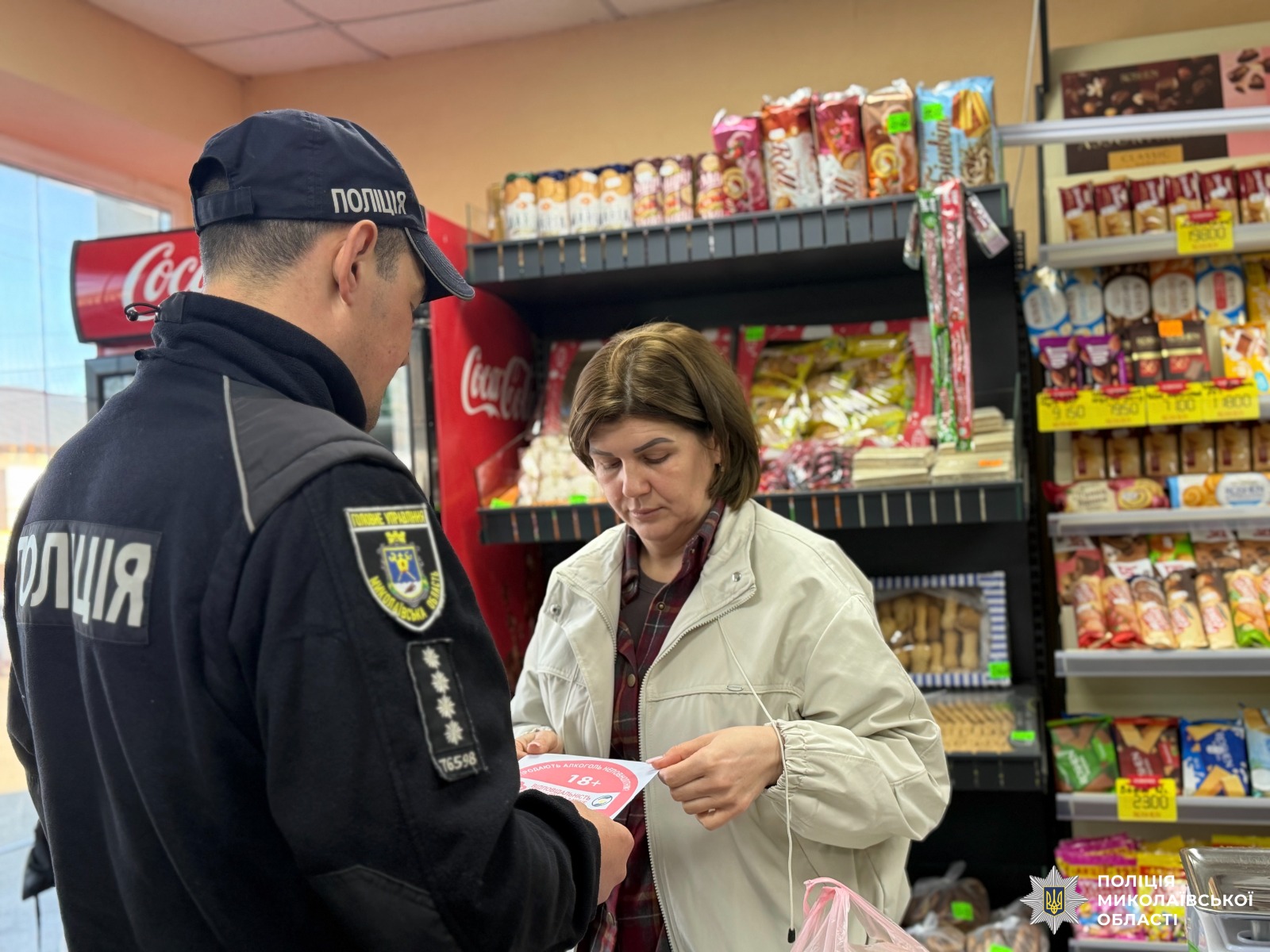 У торгівельних закладах правоохоронець залишив спеціальні памʼятки про заборону продажу таких товарів покупцям, які не досягли 18-річного віку.