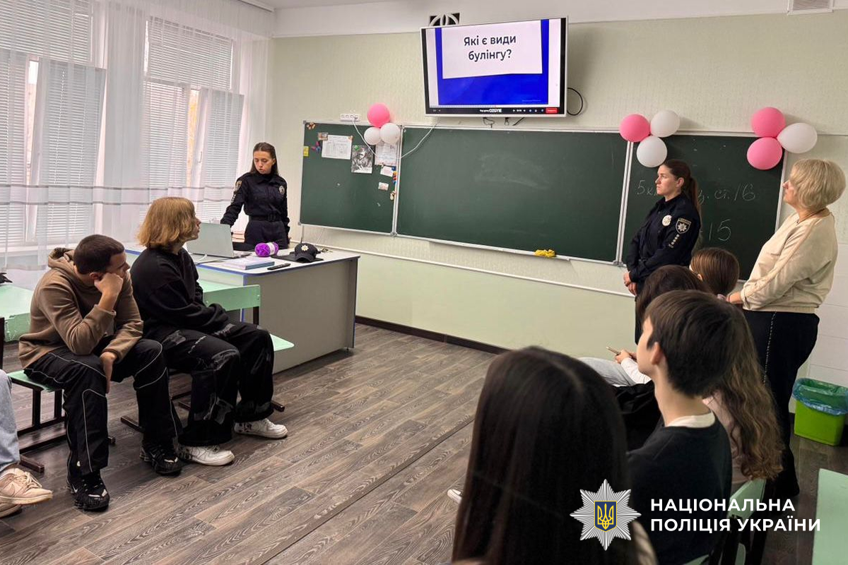 Під час заходу поліцейські розповіли про види насильства, їхні наслідки та способи захисту своїх прав, а також разом з учнями обговорили механізми мирного вирішення конфліктів.