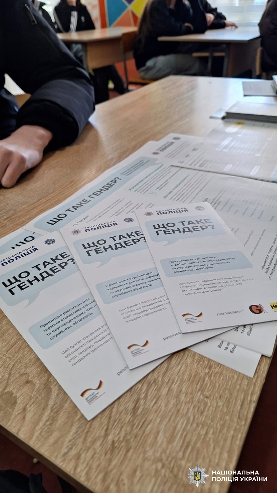 Правоохоронці ознайомили учнів із поняттям гендеру, гендерно зумовленого насильства, різницею між біологічною статтю і гендерною ідентичністю та наголосили на важливості рівних прав та можливостей для кожного.