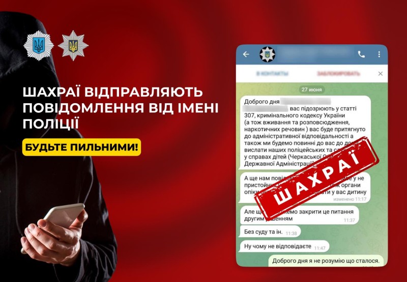 Приходять повідомлення у месенджері нібито від представників поліції? Просять підтвердити свої дані, перейшовши за посиланням? Використовують маніпуляції, щоб виманити гроші?