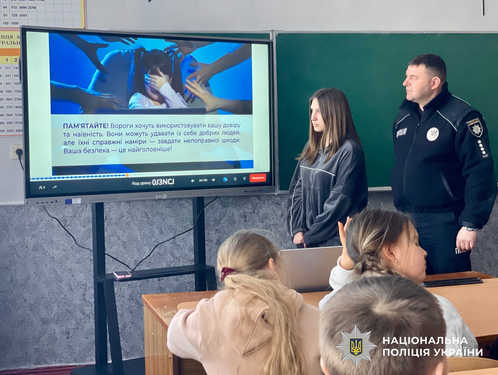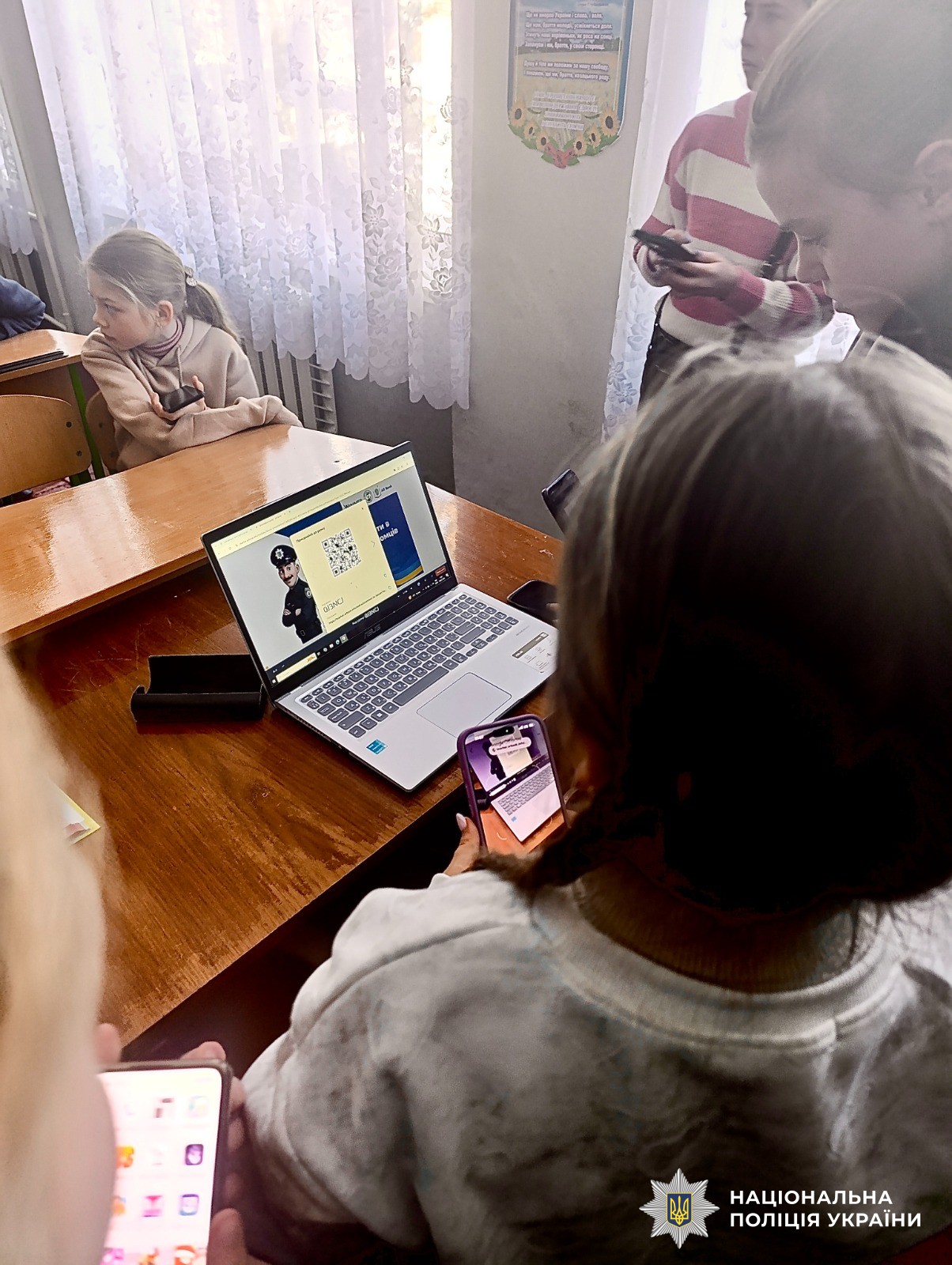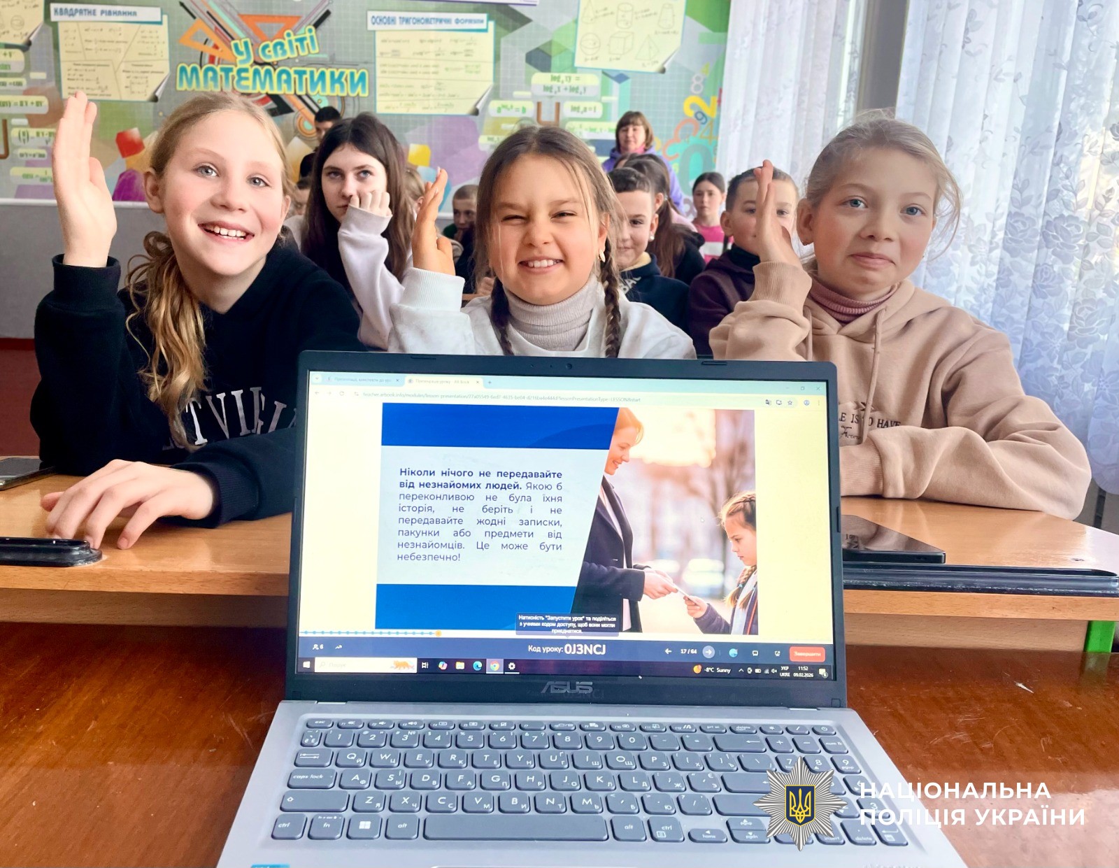 На завершення інспектори закликали дітей бути пильними при спілкуванні з незнайомцями, завжди дотримуватися заходів кібергігієни та дбати про особисту безпеку. У разі, якщо хтось чинить протиправні дії в інтернеті — не мовчати, а одразу звернутися по допомогу до батьків, вчителів чи зателефонувати до поліції за номером 102.