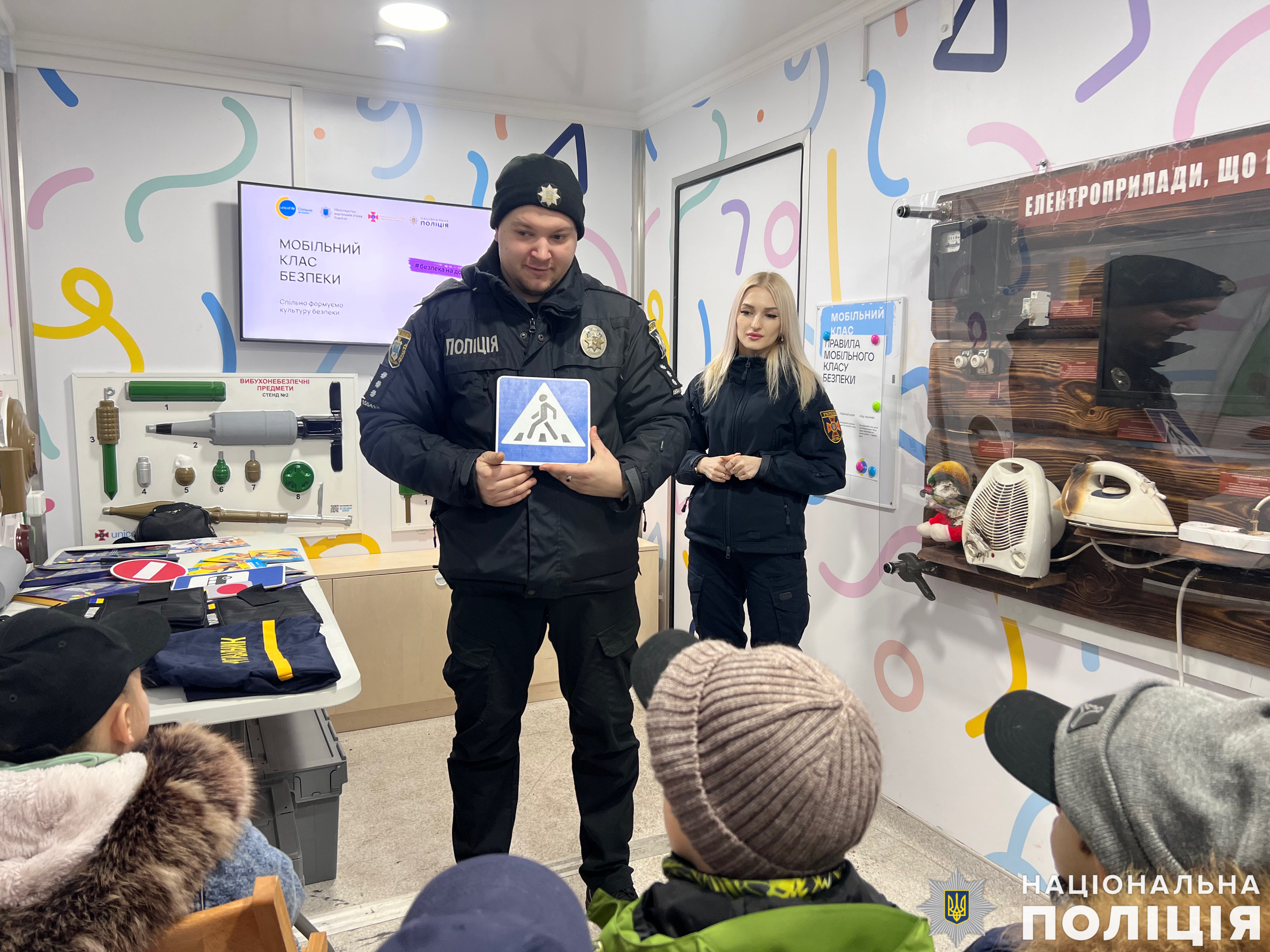 Разом до безпечного майбутнього: у мобільному класі безпеки поліцейські та рятувальники навчали дітей запобігати надзвичайним подіям