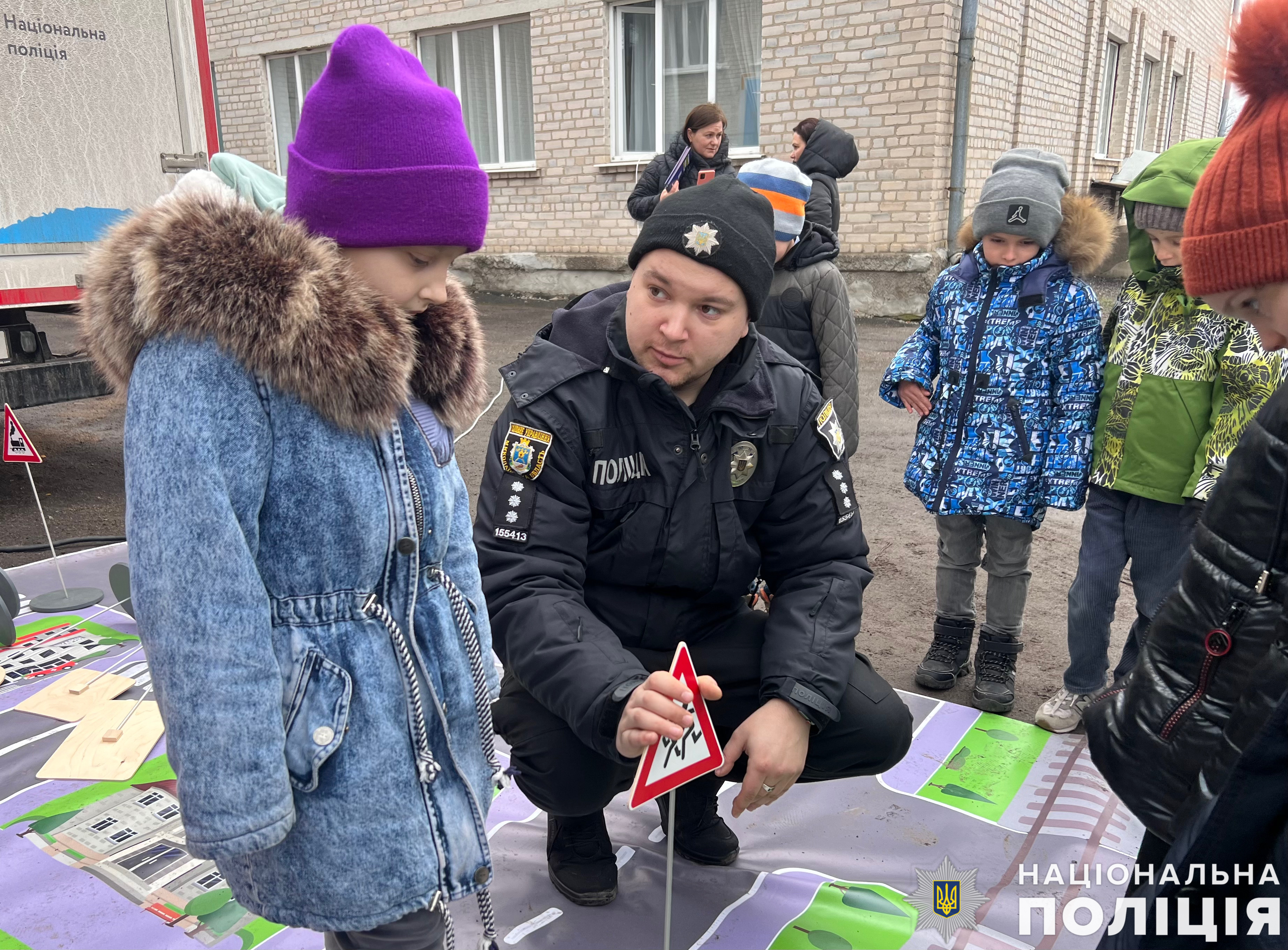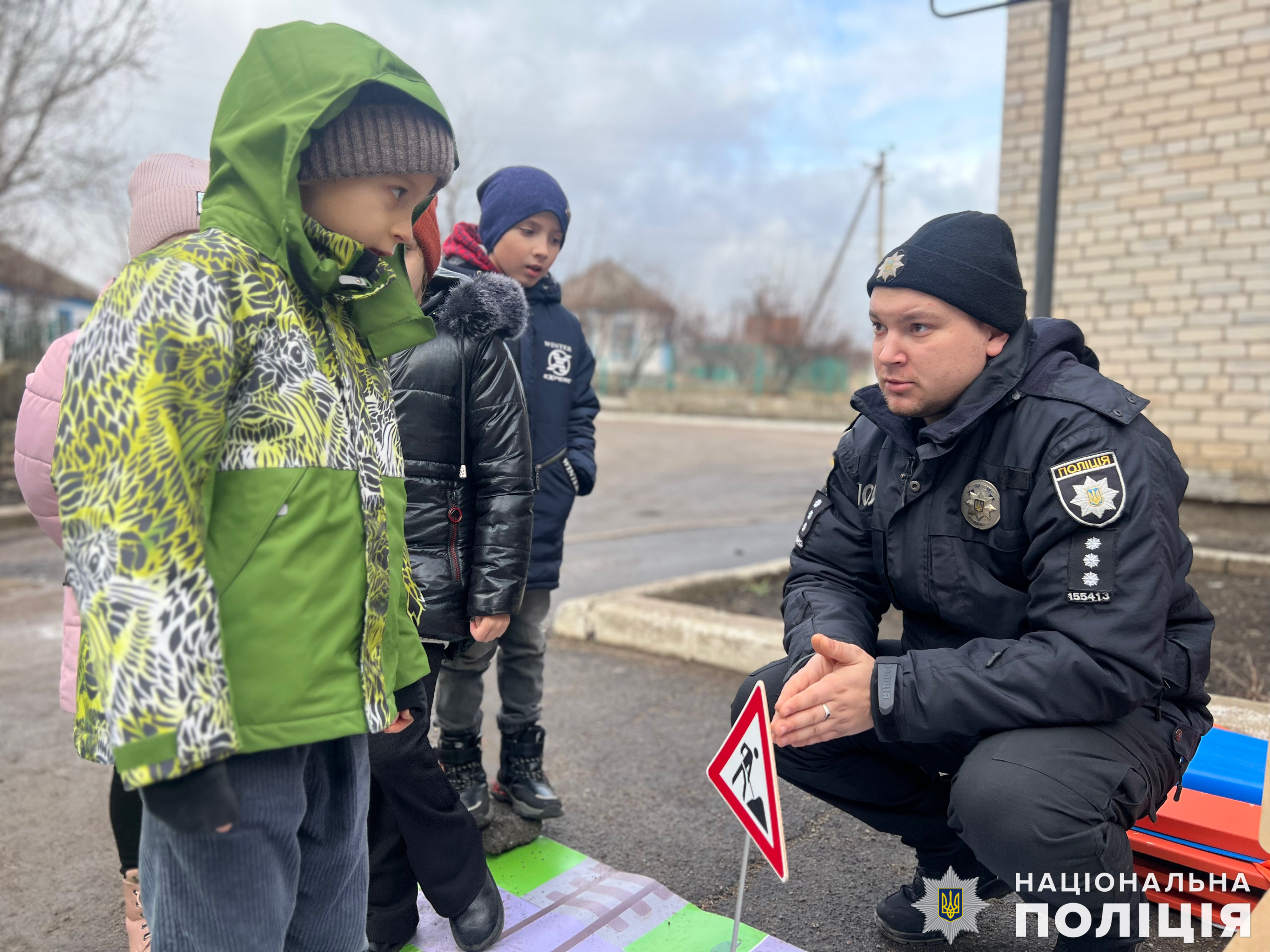 Також правоохоронець нагадав правила дорожнього руху. Аби в темну пору доби діти були помітними для водіїв, поліцейський подарував кожному учню флікер у вигляді наліпки та браслету.